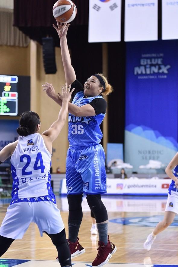 이날 삼성생명은 또 한 번의 이별을 겪어야 했다. 삼성생명이 티아나 하킨스를 불러들이며 카리스마 펜이 마지막 경기를 치른 것. 펜은 이날 30분을 모두 뛰며 16득점 10리바운드로 활약했다. 경기 전 임근배 감독과 끝까지 최선을 다하겠다는 약속을 지킨 것이다.
