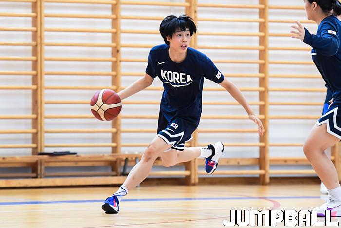 13일 헝가리 데브레첸 톱니 아르패드 세컨드아크 체육관에서 '2021 FIBA U19 여자농구월드컵' 에 참가중인 U19 여자대표팀이 오후 훈련을 실시했다. 이해란이 공격을 시도하고 있다.