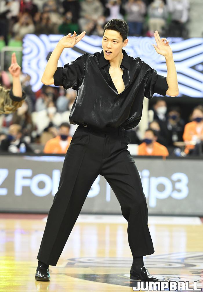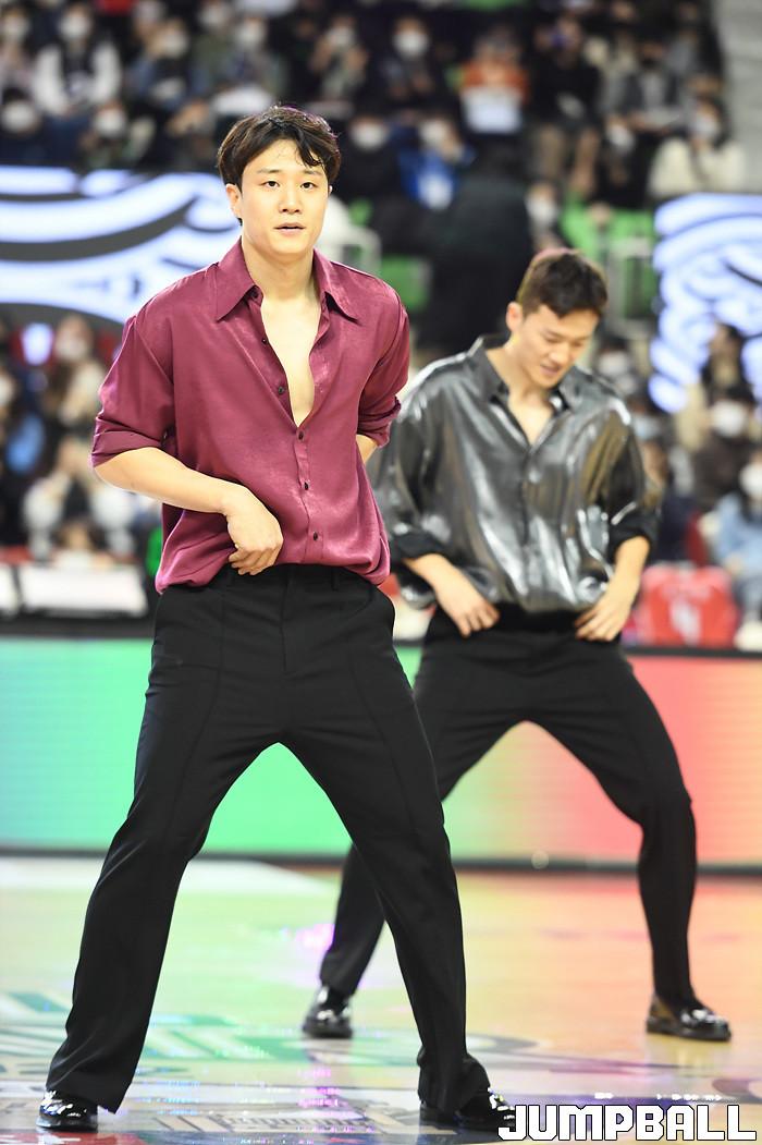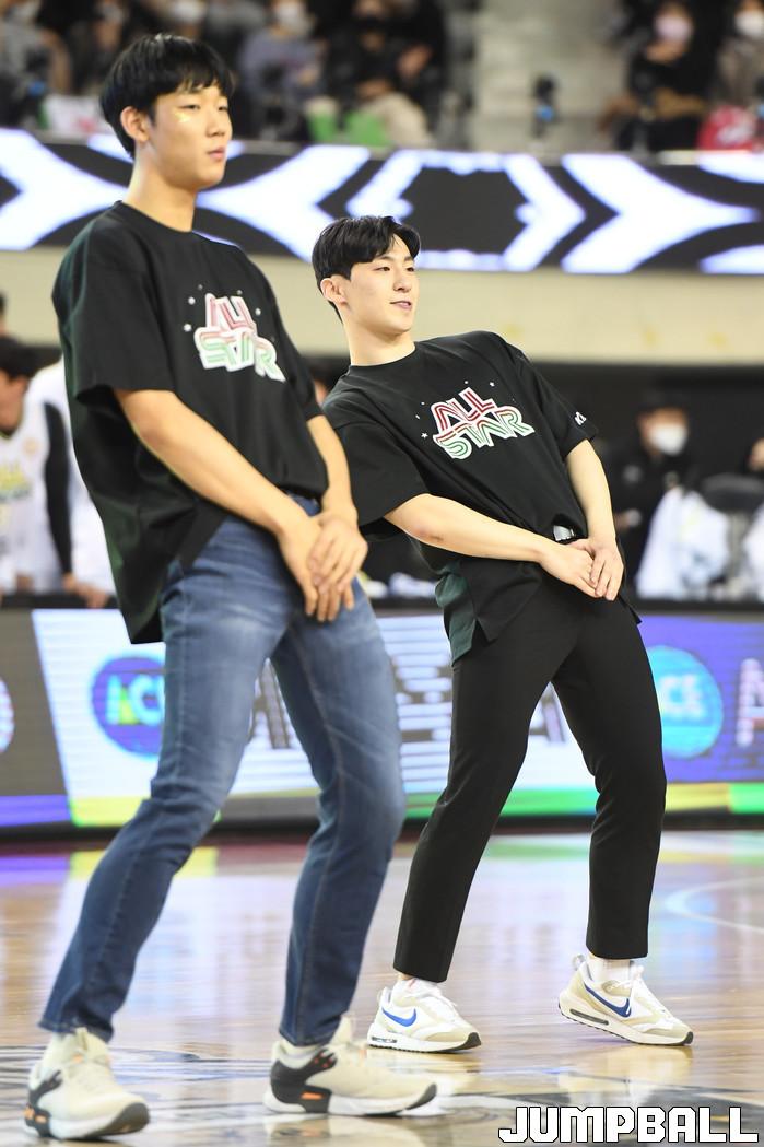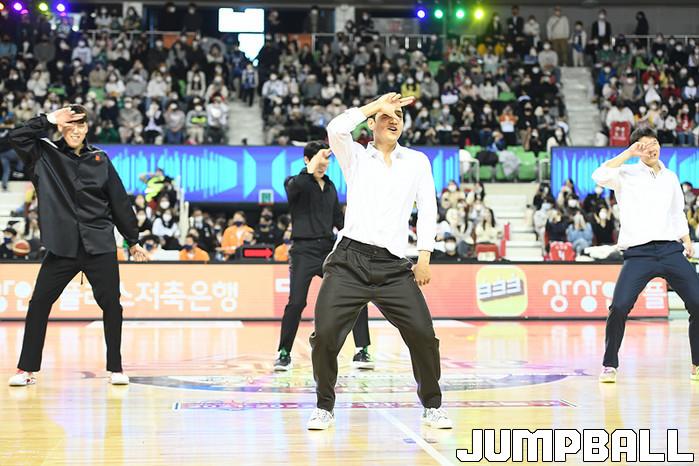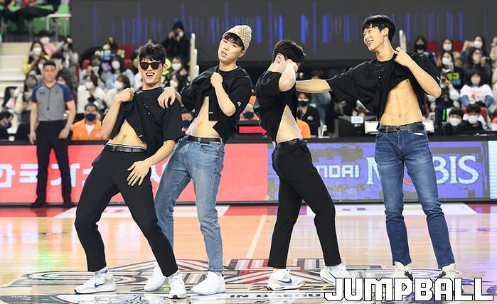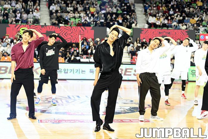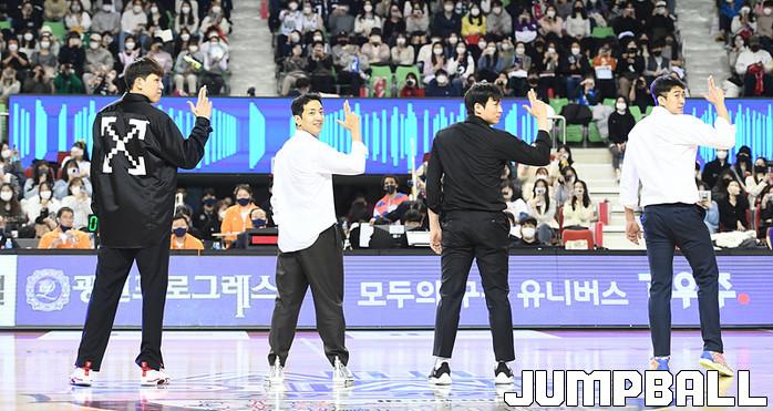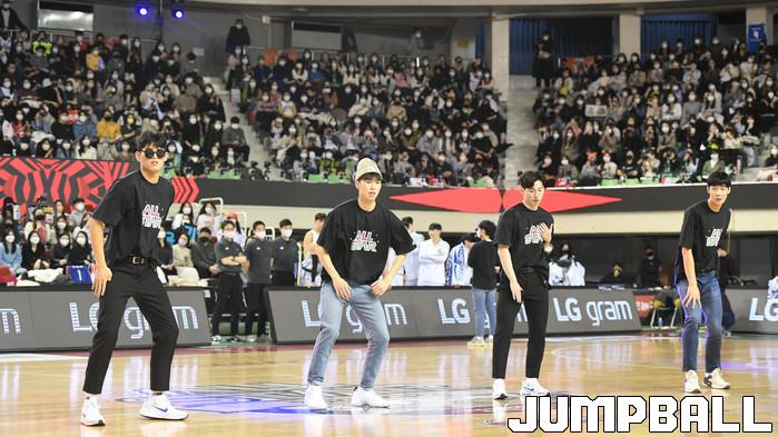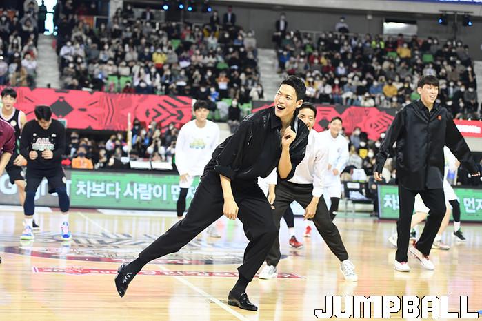 16일 대구체육관에서 열린 2021-2022 KGC인삼공사 정관장 프로농구 올스타게임. 2쿼터 작전타임에 이우석, 하윤기, 이원석, 이정현으로 구성된 크블얼라즈가 공연을 펼쳤고 3쿼터 타임 아웃때는 허훈, 양홍석, 이정현, 최준용으로 결성된 팀 허훈과 허웅, 김선형, 이대성, 박찬희로 구성된 팀 허웅간의 댄스 대결이 펼쳐졌다. KBL 올스타 선수 특별 공연 화보.