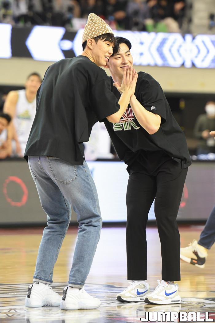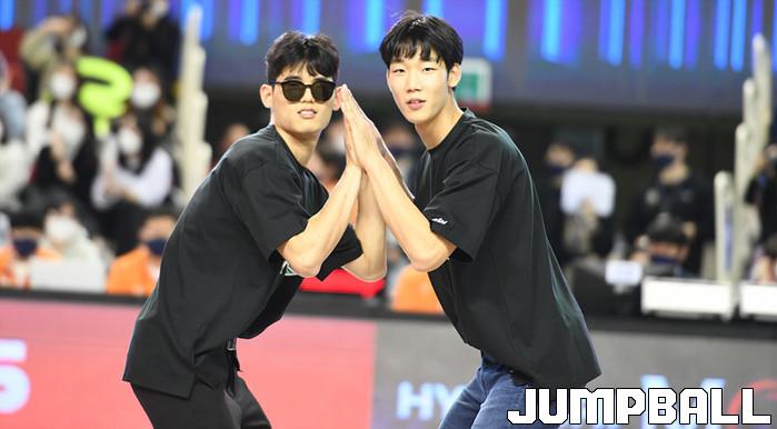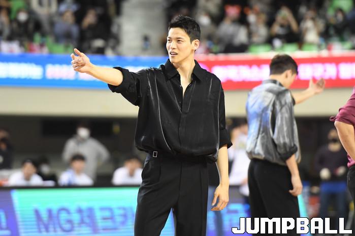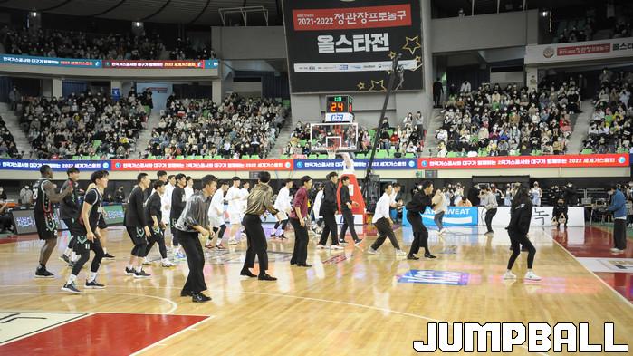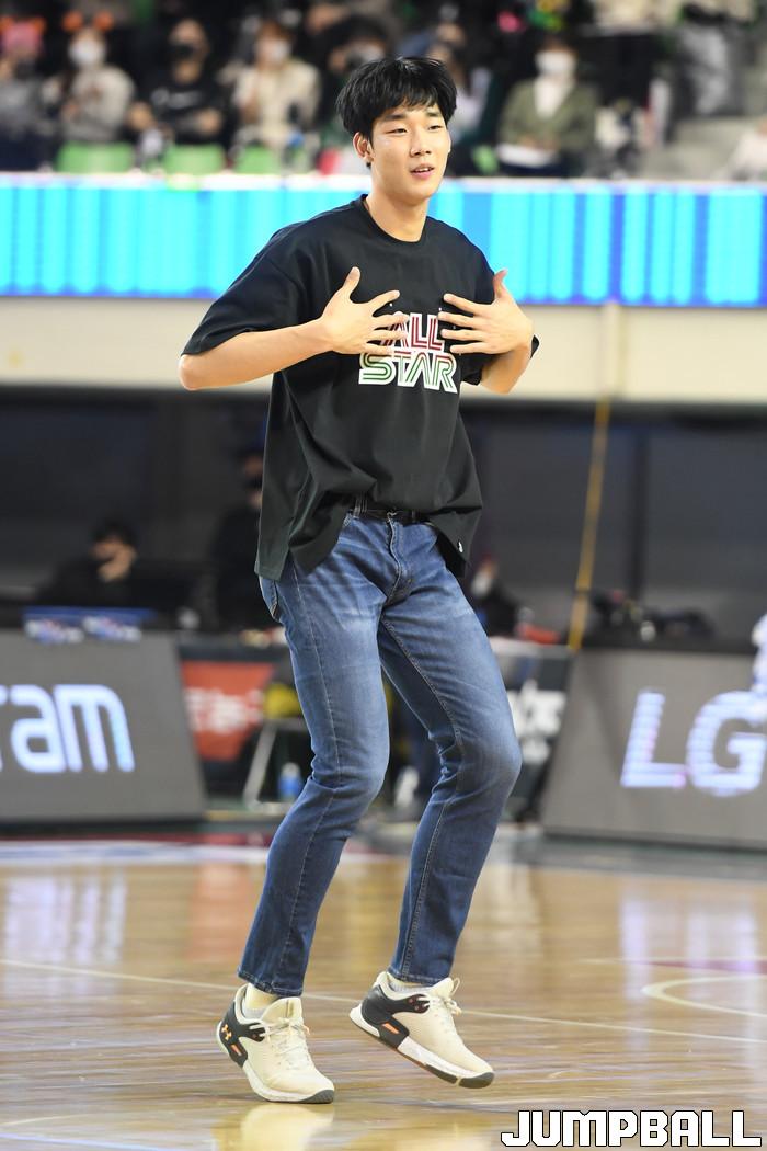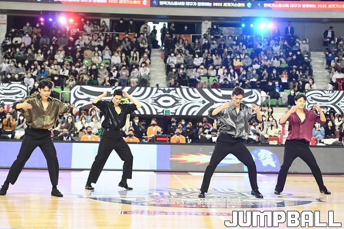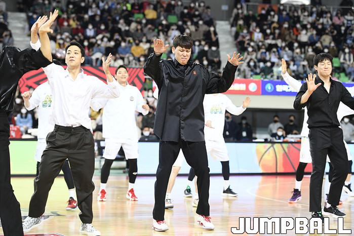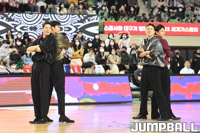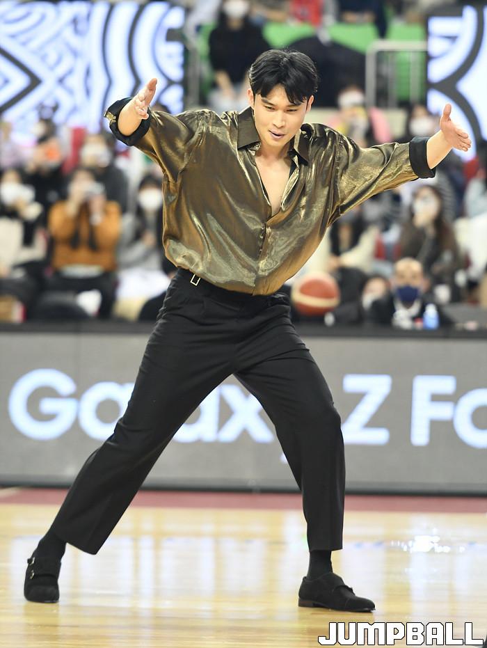 16일 대구체육관에서 열린 2021-2022 KGC인삼공사 정관장 프로농구 올스타게임. 2쿼터 작전타임에 이우석, 하윤기, 이원석, 이정현으로 구성된 크블얼라즈가 공연을 펼쳤고 3쿼터 타임 아웃때는 허훈, 양홍석, 이정현, 최준용으로 결성된 팀 허훈과 허웅, 김선형, 이대성, 박찬희로 구성된 팀 허웅간의 댄스 대결이 펼쳐졌다. KBL 올스타 선수 특별 공연 화보.