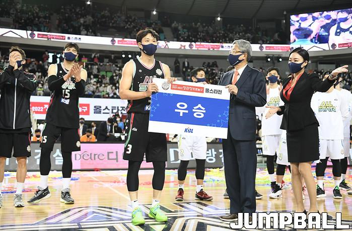 16일 대구체육관에서 열린 2021-2022 KGC인삼공사 정관장 프로농구 올스타게임. 팀 허웅과 팀 허훈의 대결에서 팀 허웅이 팀 허훈에 120-117로 승리했다.