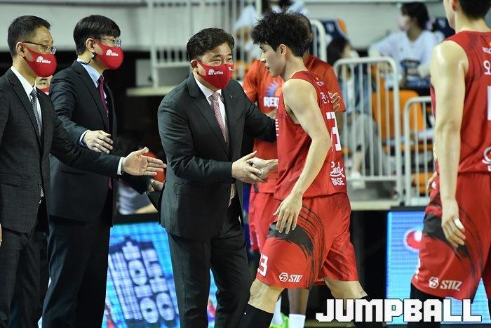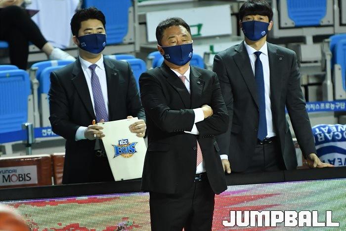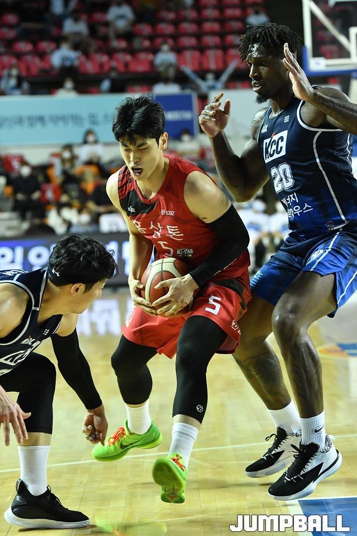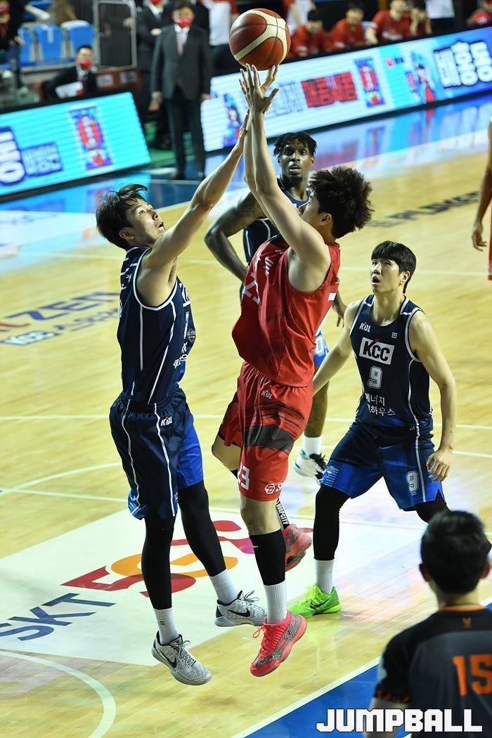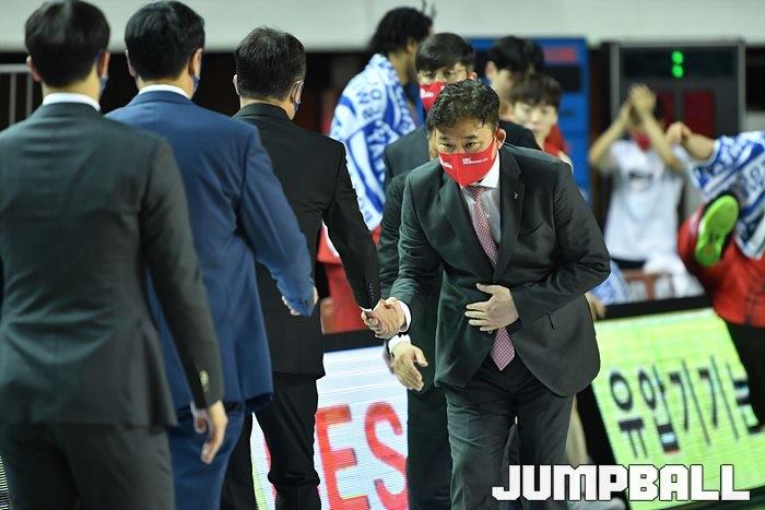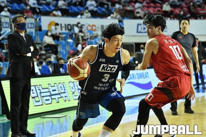 [점프볼=전주/유용우 기자] 3일 전주실내체육관에서 열린 2020-2021 현대모비스 프로농구 전주 KCC와 안양 KGC인삼공사의 챔피언결정전 1차전, KGC인삼공사가 98-79로 KCC에 원정 승리를 거두었다.
