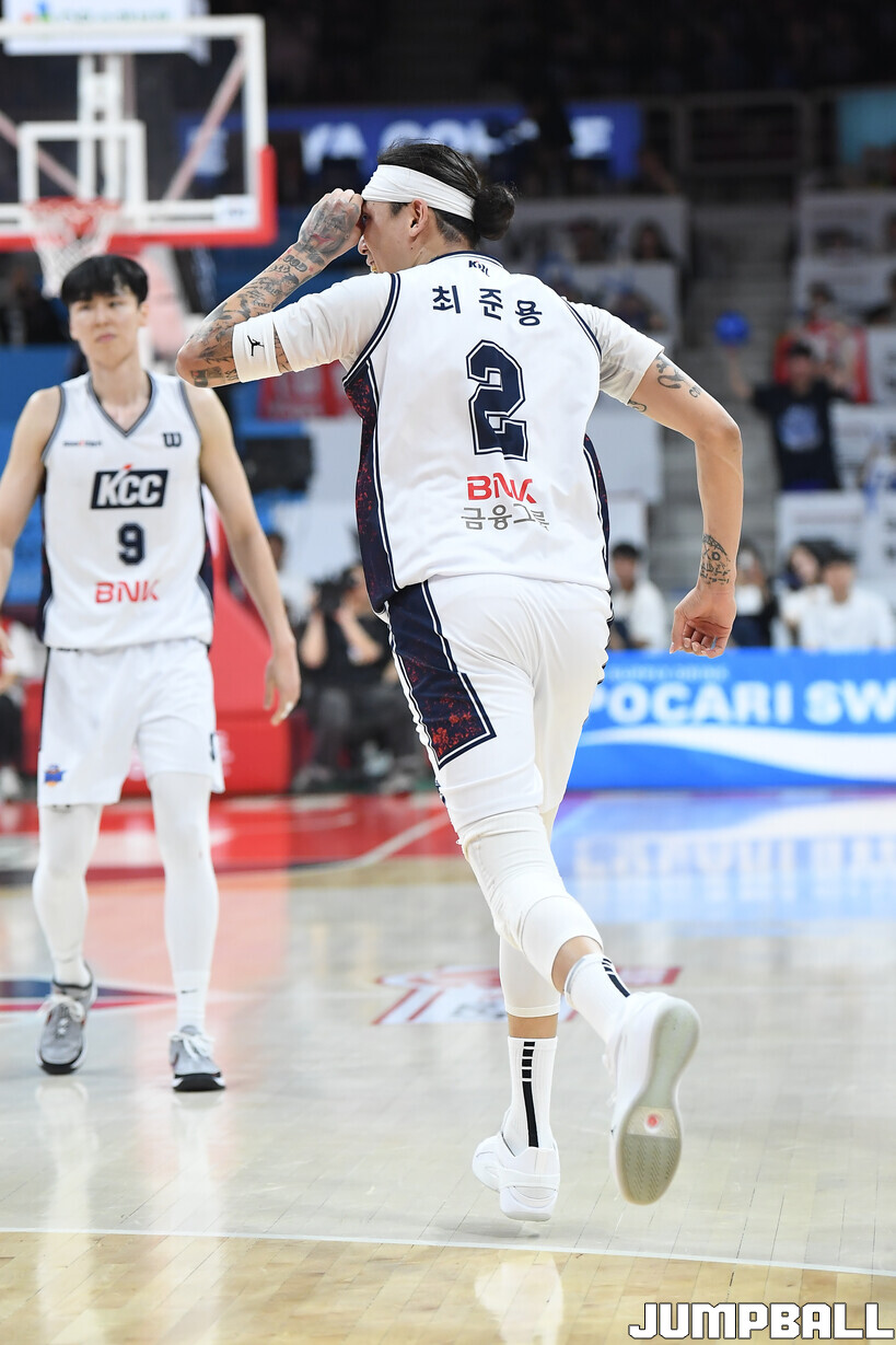 경기 후 최준용은 “몸을 풀 때 우리를 응원하러 온 원정 팬들을 봤는데, 진짜 말이 안 되더라. 응원을 보고 있으니 몸이 뜨거워졌다. 뛰면서 ‘이건 꼭 보답해야겠다’는 생각뿐이었다. 그래서 세리머니도 더 적극적으로 했다”고 말했다.
