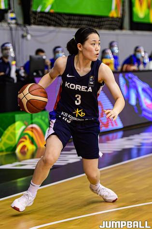 14일 헝가리 데브레첸 올라 가보르 스포츠홀에서 열린 '2021 FIBA U19 여자농구월드컵' 한국과 아르헨티나의 순위결정전 경기, 고은채가 레이업슛으로 몸을 풀고 있다.