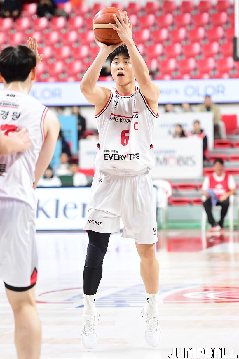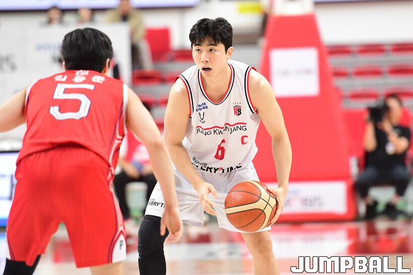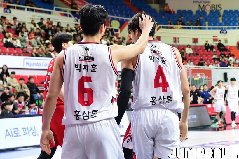 엔드라인에서 인바인드 패스를 하려던 박지훈은 등을 돌리고 수비를 하고 있던 박무빈의 등을 맞춘 뒤 곧바로 골밑 득점을 성공했고, 정관장은 이 득점을 시작으로 7분 동안 20-2로 압도했다.