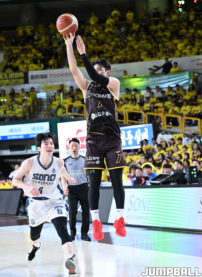 유기상은 이번 시즌 소노를 상대로 3점슛 성공률 48.7%(19/39)를 기록했다. 평균 3점슛은 3.2개.