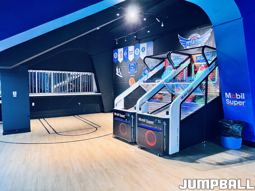 기존 기념품 판매점을 이번에 새롭게 개편했다. 바닥은 농구 코트처럼 새로 깔고, 그 위에 농구 게임기도 설치했다. 하프 타임 때 팬들이 몰려 농구를 즐겼다.