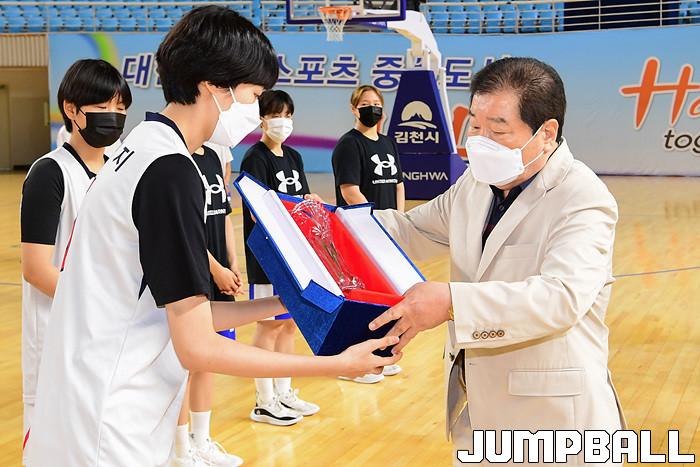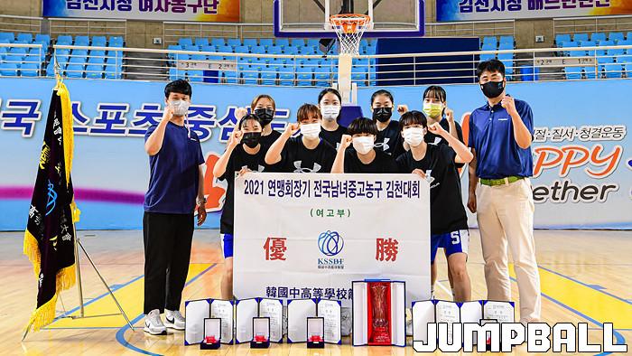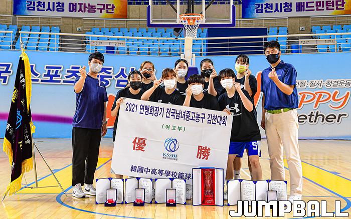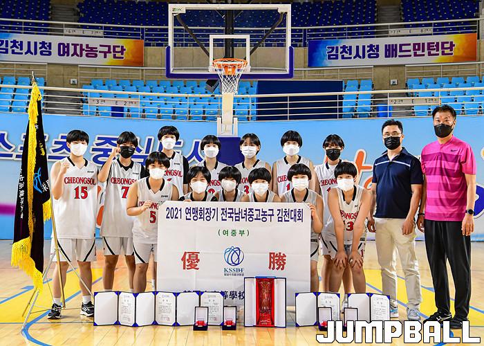 22일 경상북도 김천실내체육관에서 열린 2021 연맹회장기 전국남녀중고농구대회 김천대회 여자부 결승전 경기, 여중부에서는 청솔중이 수피아여중에 70-62로 승리하였고 여고부에서는 수원여고가 삼천포여고에 90-62로 승리하며 대회 우승을 차지하였다. 여자부 시상식 화보