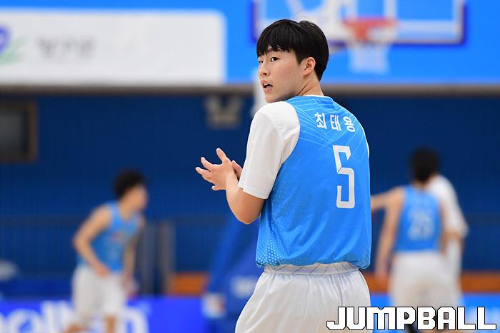 5일 강원도 양구에 위치한 양구 청춘체육관에서 포카리 스웨트 히어로즈 2021 KBL 유스 엘리트 캠프 4일차가 진행되었다. 인헌고 최태용이 환호하고 있다.