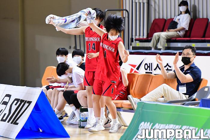 22일 경상북도 김천실내체육관에서 열린 2021 연맹회장기 전국남녀중고농구대회 김천대회 여중부 청솔중과 수피아여중 결승전 경기, 벤치에 있는 청솔중 선수들이 환호하고 있다.
