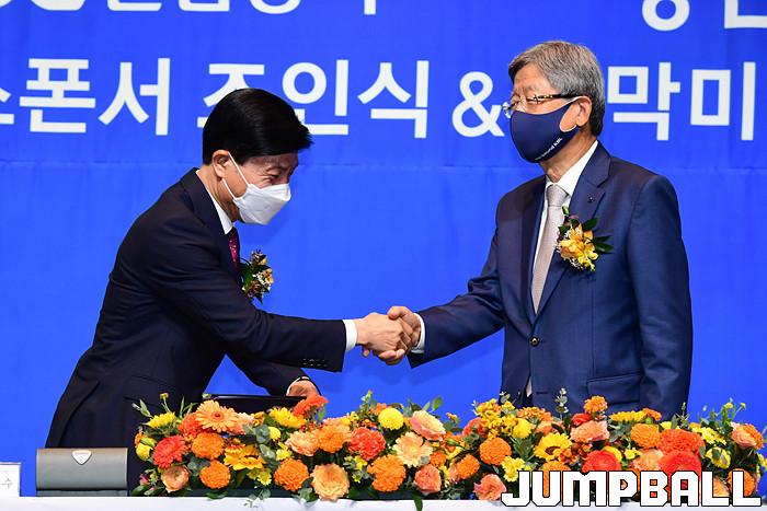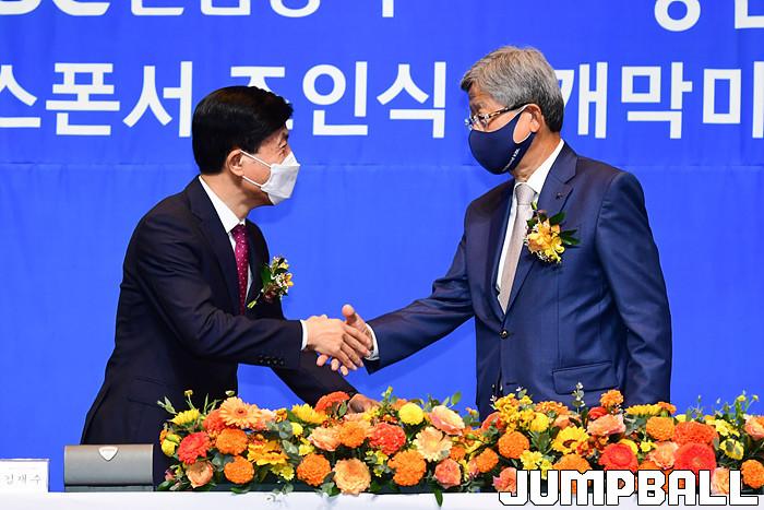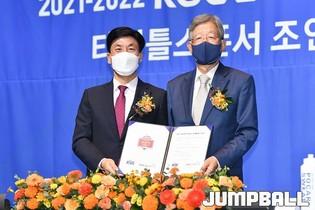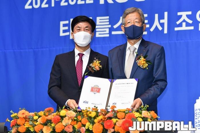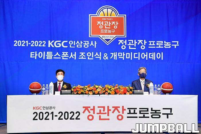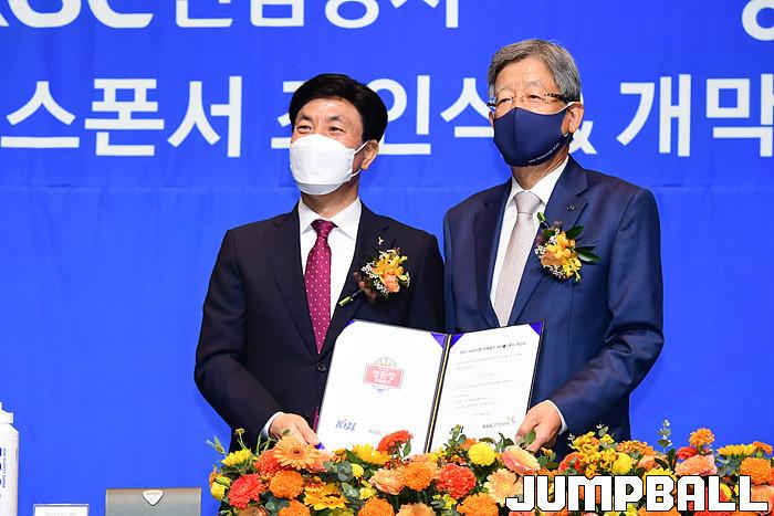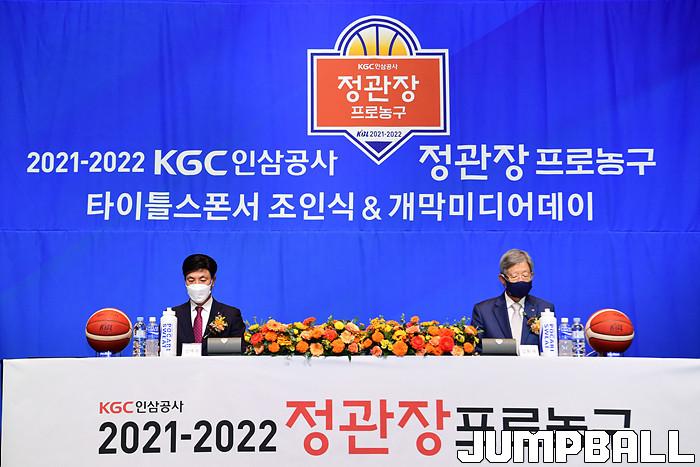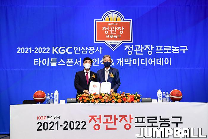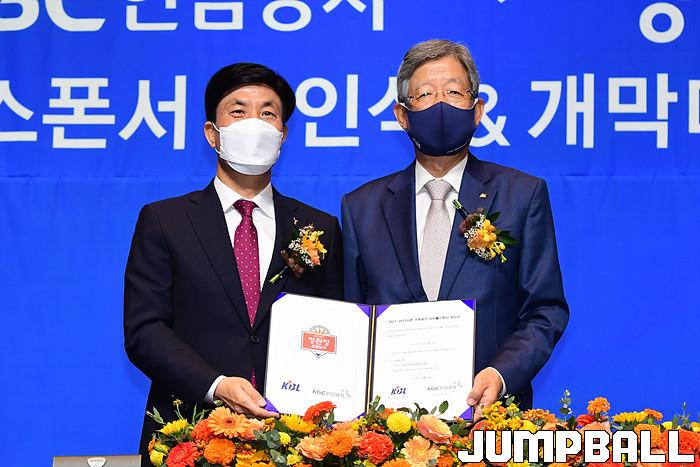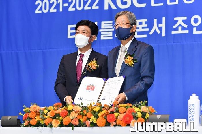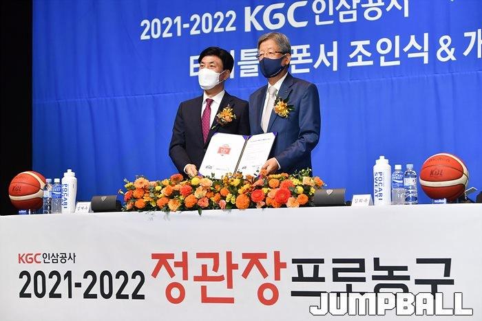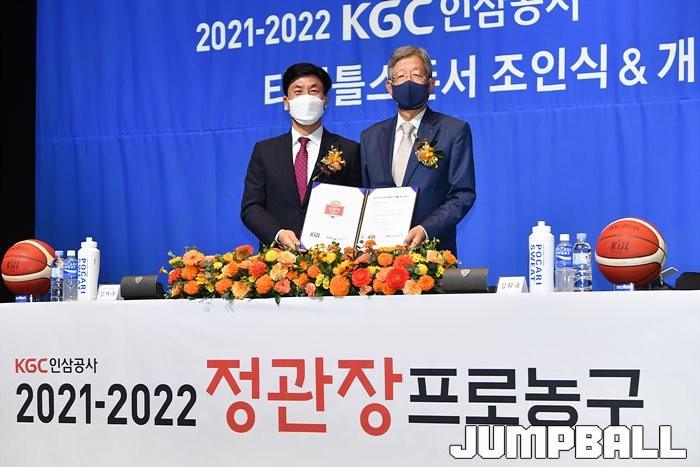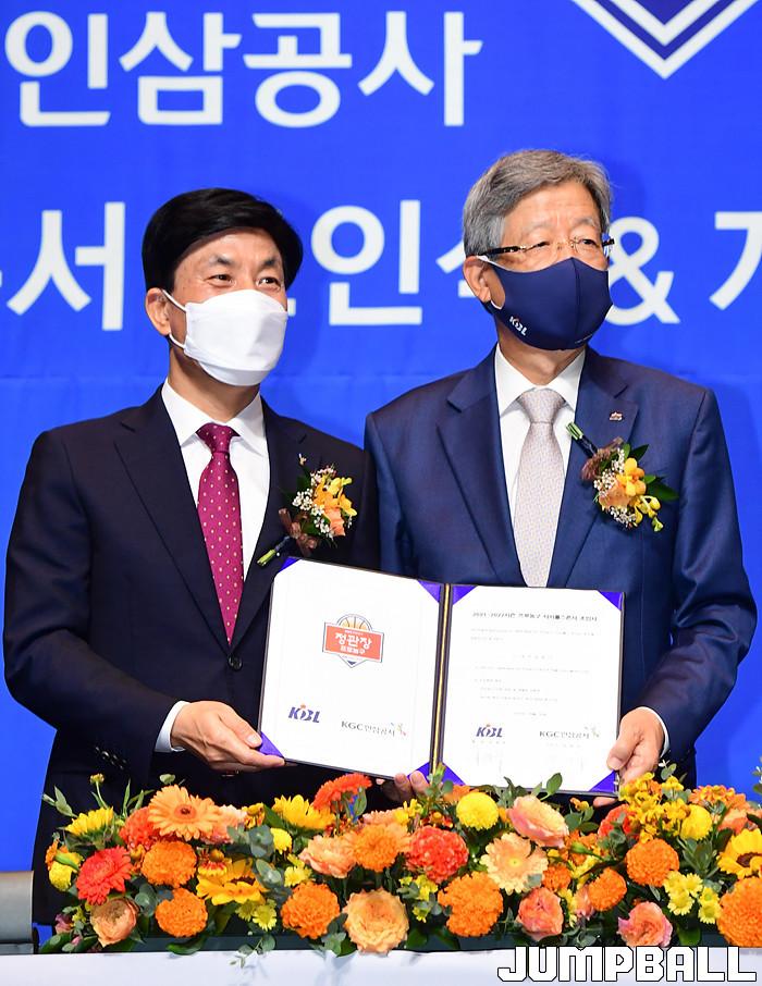 30일 서울 JW 메리어트 호텔 그랜드 볼룸에서 KBL 타이틀 스폰서 조인식을 가졌다. KGC인삼공사 김재수 CEO와 KBL 김희옥 총재가 참석한 가운데 조의서에 사인을 교환하며 KGC인삼공사가 KBL 타이틀 스폰서임를 알렸다.