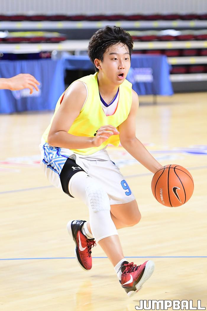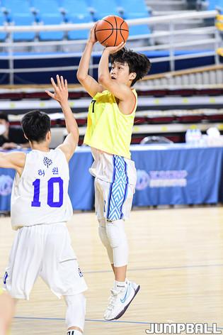 20일 김천실내체육관에서 열린 2021 연맹회장기 전국남녀중고농구 김천대회 남중부 명지중과 송도중의 경기, 송도중 방성인이 볼을 소유하고 있다.