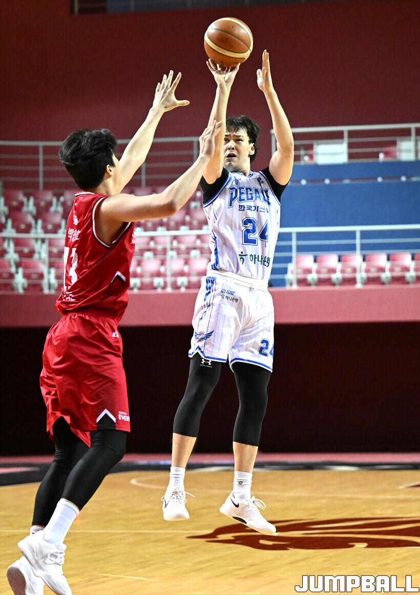 [점프볼=용인/문복주 기자] 3일 경희대 국제캠퍼스 선승관에서 열린 2025-2026 KBL D리그 안양 정관장과 대구 한국가스공사의 경기에서 한국가스공사 손준이 중거리 슛을 시도하고 있다.
