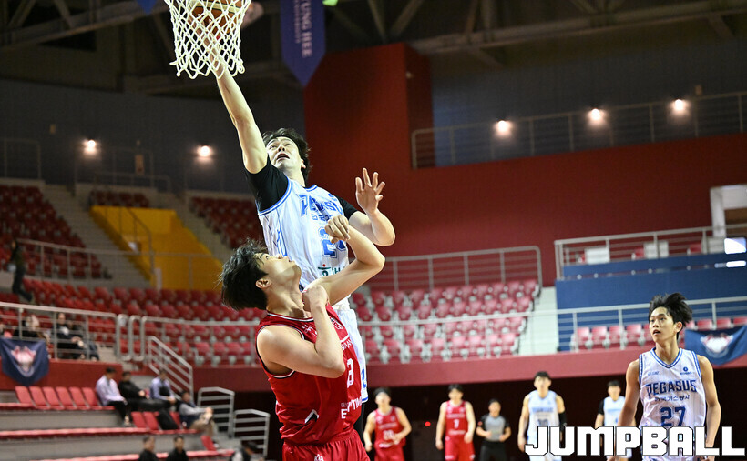 [점프볼=용인/문복주 기자] 3일 경희대 국제캠퍼스 선승관에서 열린 2025-2026 KBL D리그 안양 정관장과 대구 한국가스공사의 경기에서 한국가스공사 손준이 골밑 중앙을 파고들어 득점을 하고 있다.
