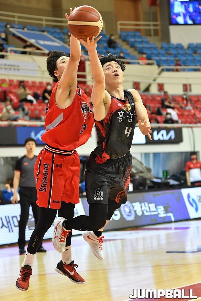 [점프볼=울산/유용우 기자] 24일 울산 동천체육관에서 열린 2020-2021 현대모비스 프로농구 울산 현대모비스와 안양 KGC인삼공사의 4강 플레이오프 2차전, KGC 이재도가 레이업을 올리고 있다.