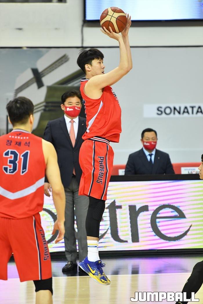 [점프볼=울산/유용우 기자] 24일 울산 동천체육관에서 열린 2020-2021 현대모비스 프로농구 울산 현대모비스와 안양 KGC인삼공사의 4강 플레이오프 2차전, 현대모비스 전준범이 3점슛을 던지고 있다.