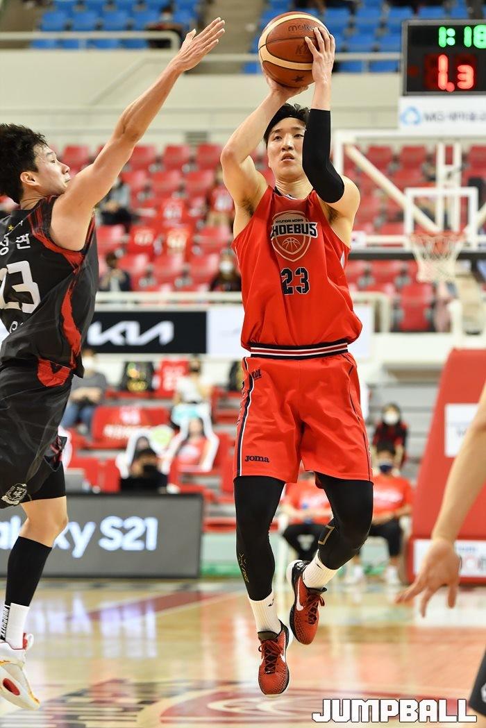 [점프볼=울산/유용우 기자] 24일 울산 동천체육관에서 열린 2020-2021 현대모비스 프로농구 울산 현대모비스와 안양 KGC인삼공사의 4강 플레이오프 2차전, 현대모비스 김민구가 슛을 시도하고 있다.