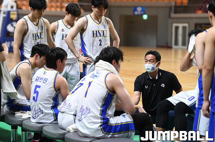 27일 경북 상주실내체육관에서 열린 제37회 MBC배 전국대학농구 상주대회 준결승전으로 성균관대와 한양대의 경기, 한양대 정재훈 감독이 작전을 지시하고 있다.