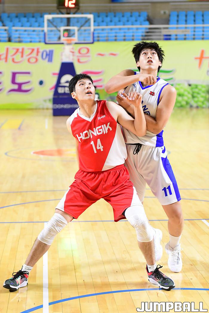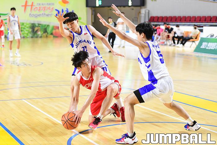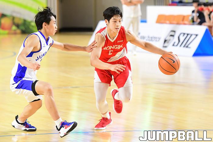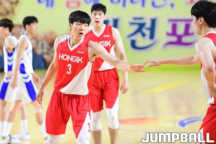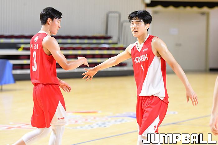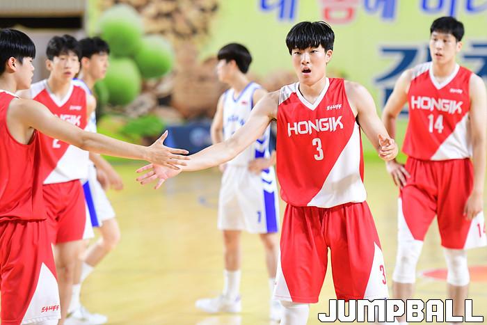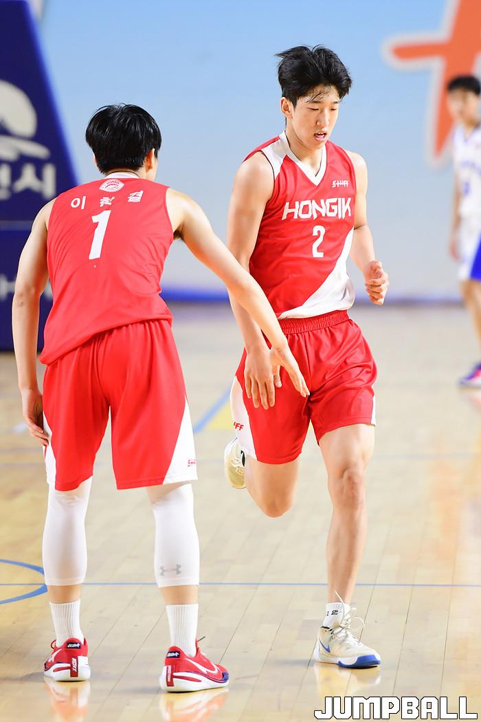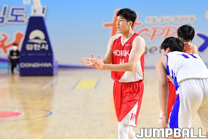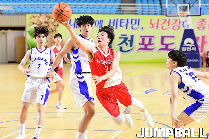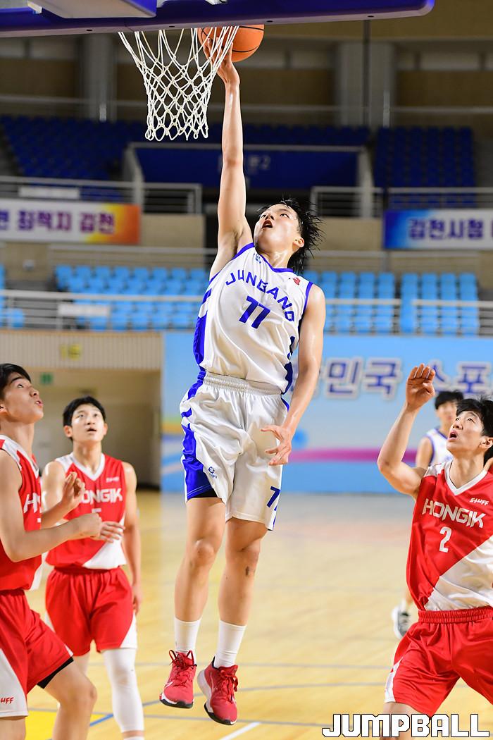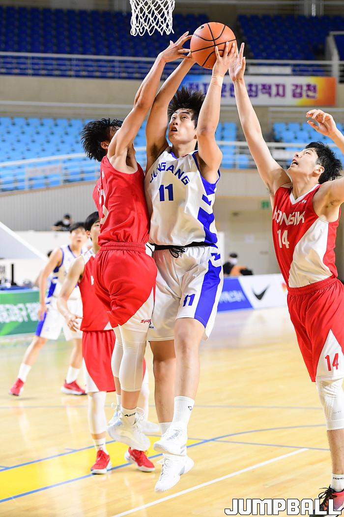 19일 김천실내체육관에서 열린 2021 연맹회장기 전국남녀중고농구 김천대회 남고부 홍대부고와 부산중앙고의 경기, 홍대부고가 부산중앙고에 100-66으로 승리했다. 홍대부고와 부산중앙고 경기 화보