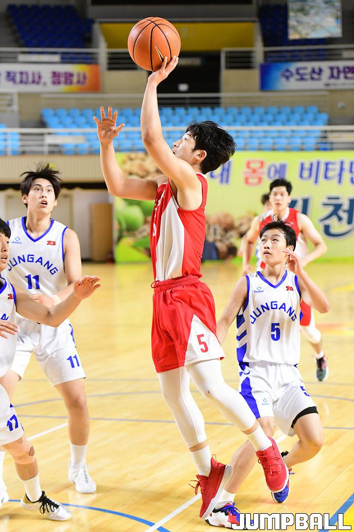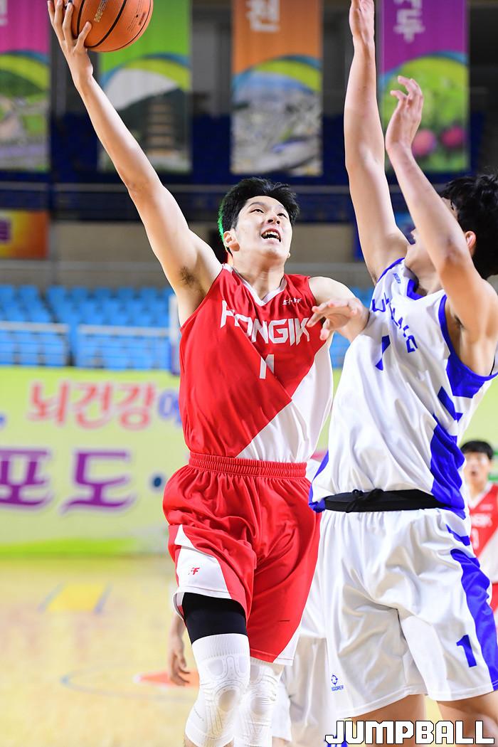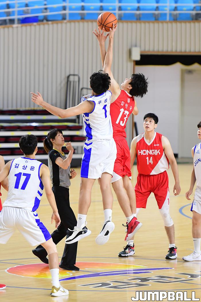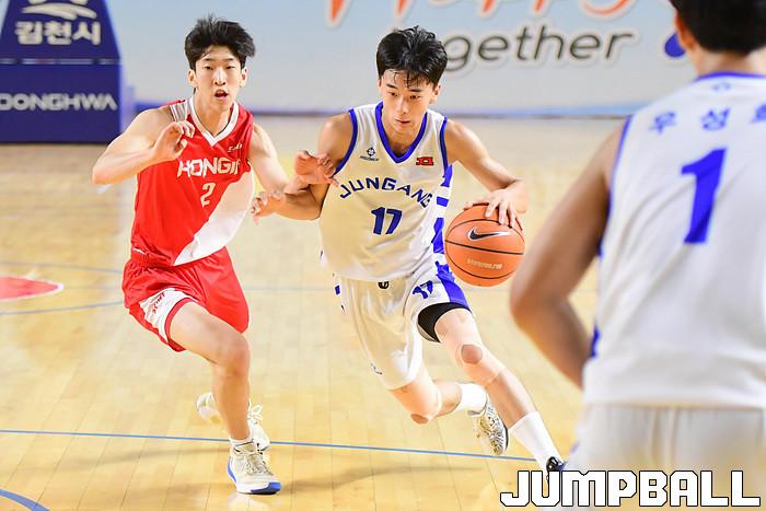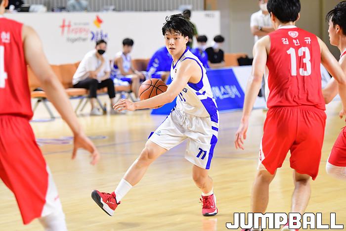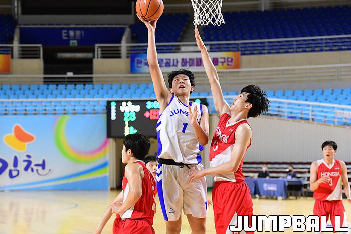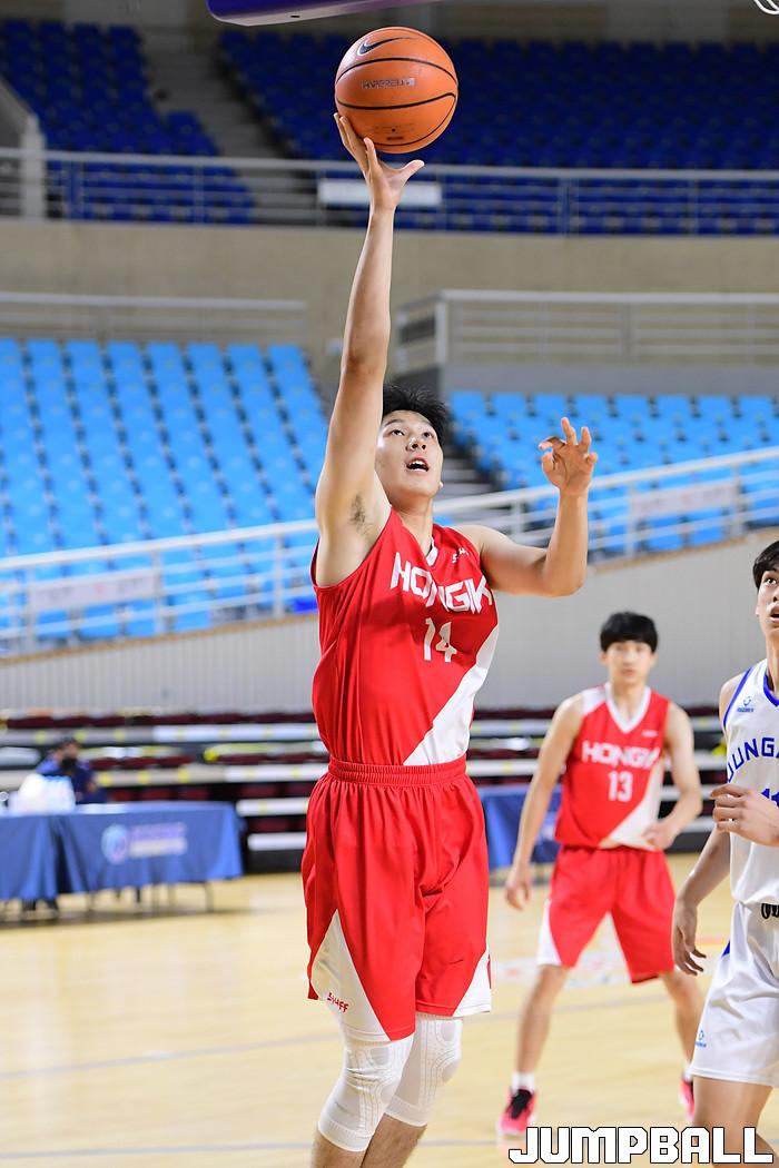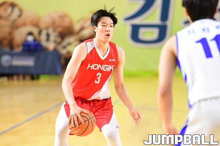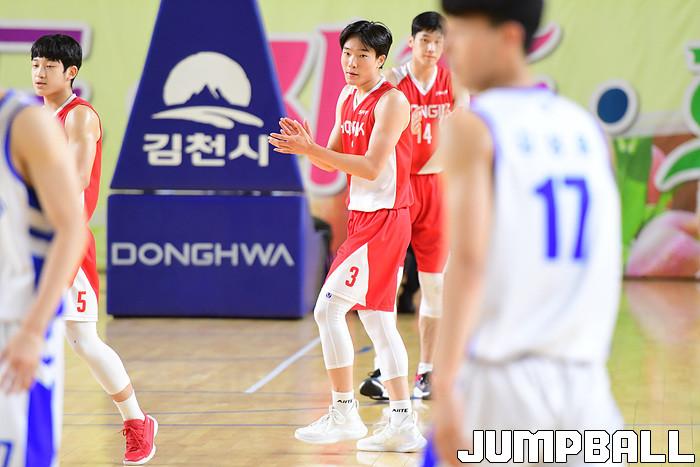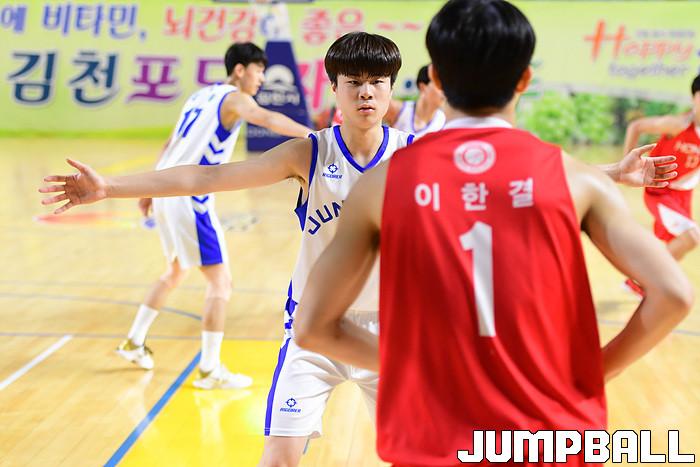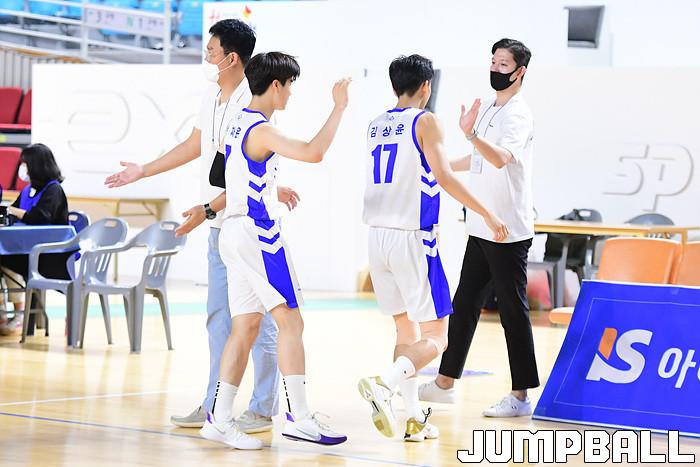 19일 김천실내체육관에서 열린 2021 연맹회장기 전국남녀중고농구 김천대회 남고부 홍대부고와 부산중앙고의 경기, 홍대부고가 부산중앙고에 100-66으로 승리했다. 홍대부고와 부산중앙고 경기 화보