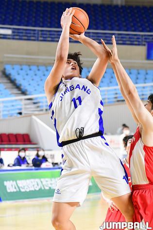19일 김천금릉초등학교 체육관에서 열린 2021 연맹회장기 전국남녀중고농구 김천대회 남중부 명지중과 금명중의 경기, 금명중 전예찬이 자유투를 시도하고 있다.