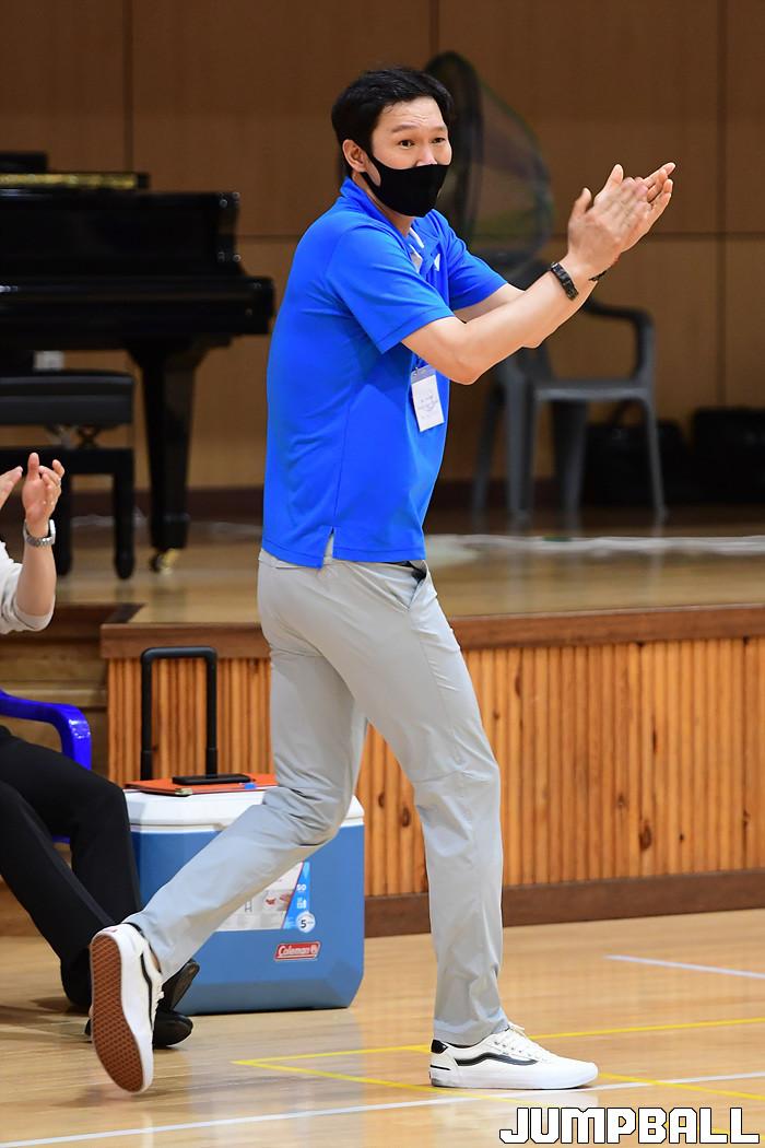 19일 김천금릉초등학교 체육관에서 열린 2021 연맹회장기 전국남녀중고농구 김천대회 남중부 명지중과 금명중의 경기, 금명중 김일모 코치가 선수들을 독려하고 있다.