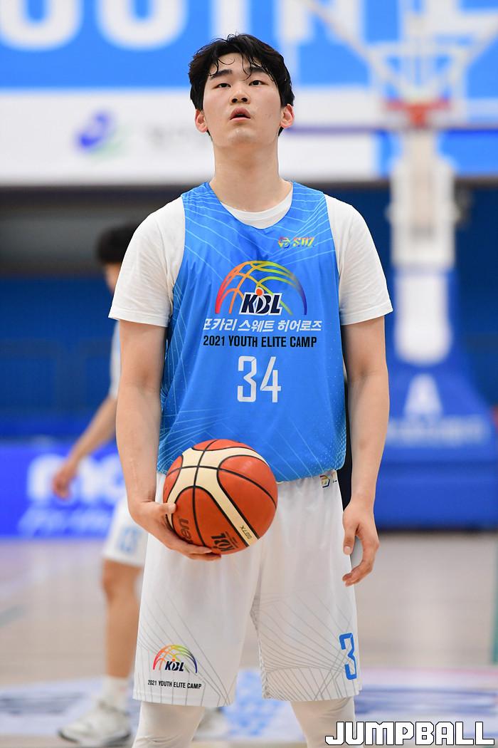 5일 강원도 양구에 위치한 양구 청춘체육관에서 포카리 스웨트 히어로즈 2021 KBL 유스 엘리트 캠프 4일차가 진행되었다. 경복고 홍상민이 자유투를 시도하고 있다.