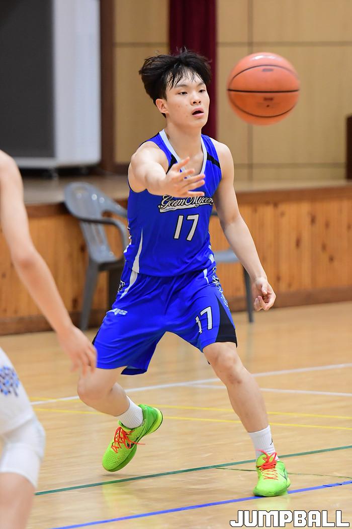 19일 김천금릉초등학교 체육관에서 열린 2021 연맹회장기 전국남녀중고농구 김천대회 남중부 명지중과 금명중의 경기, 금명중 최태원이 패스를 시도하고 있다.