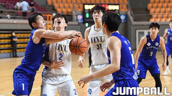 26일 경북 상주실내체육관에서 열린 제37회 MBC배 전국대학농구 상주대회 준준결승전으로 명지대와 한양대의 경기, 명지대 김종훈이 한양대 표승빈의 돌파를 저지하고 있다.