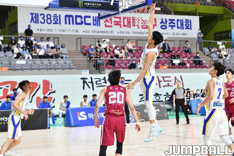 20일 경상북도 상주실내체육관에서 열린 제38회 MBC배 전국대학농구 상주대회에 경희대와 연세대의 준결승전으로 연세대 김보배가 원핸드 덩크를 작렬하고 있다.