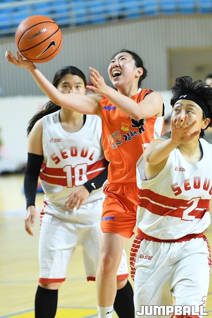 [점프볼=김천/유용우 기자] 10일 김천실내체육관에서 열린 2021 전국실업농구연맹전 서울시농구협회와 김천시청의 경기, 김천시청 김유진이 공격하고 있다.