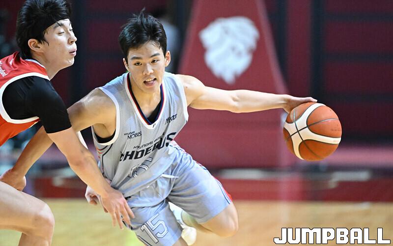[점프볼=용인/문복주 기자] 21일 경희대 선승관 체육관에서 열린 2025-2026 KBL D리그 서울 SK와 울산 현대모비스의 경기에서 현대모비스 김건하가 순간 돌파를 시도하고 있다.