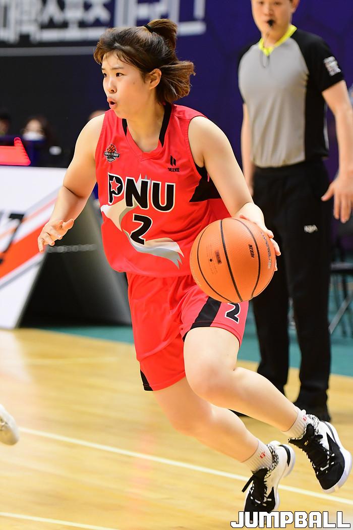 [점프볼=수원/박상혁 기자] 8일 서수원칠보체육관에서 열린 2021 KUSF 대학농구 U리그 부산대와 울산대의 여자부 4강 경기, 부산대 강미혜가 돌파를 시도하고 있다.