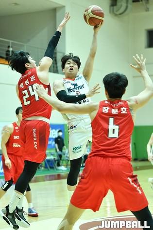 [점프볼=이천/유용우 기자] 16일 이천 LG 챔피언스파크에서 열린 2020-2021 KBL D-리그 2차 대회 SK와 전자랜드의 챔피언 결정전, 전자랜드 박찬호가 중거리슛을 던지고 있다.