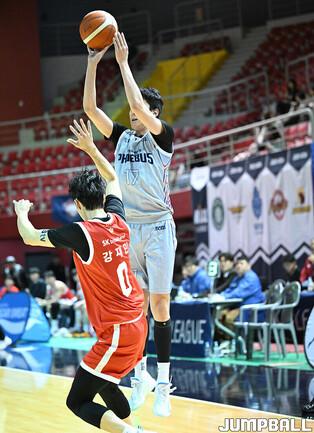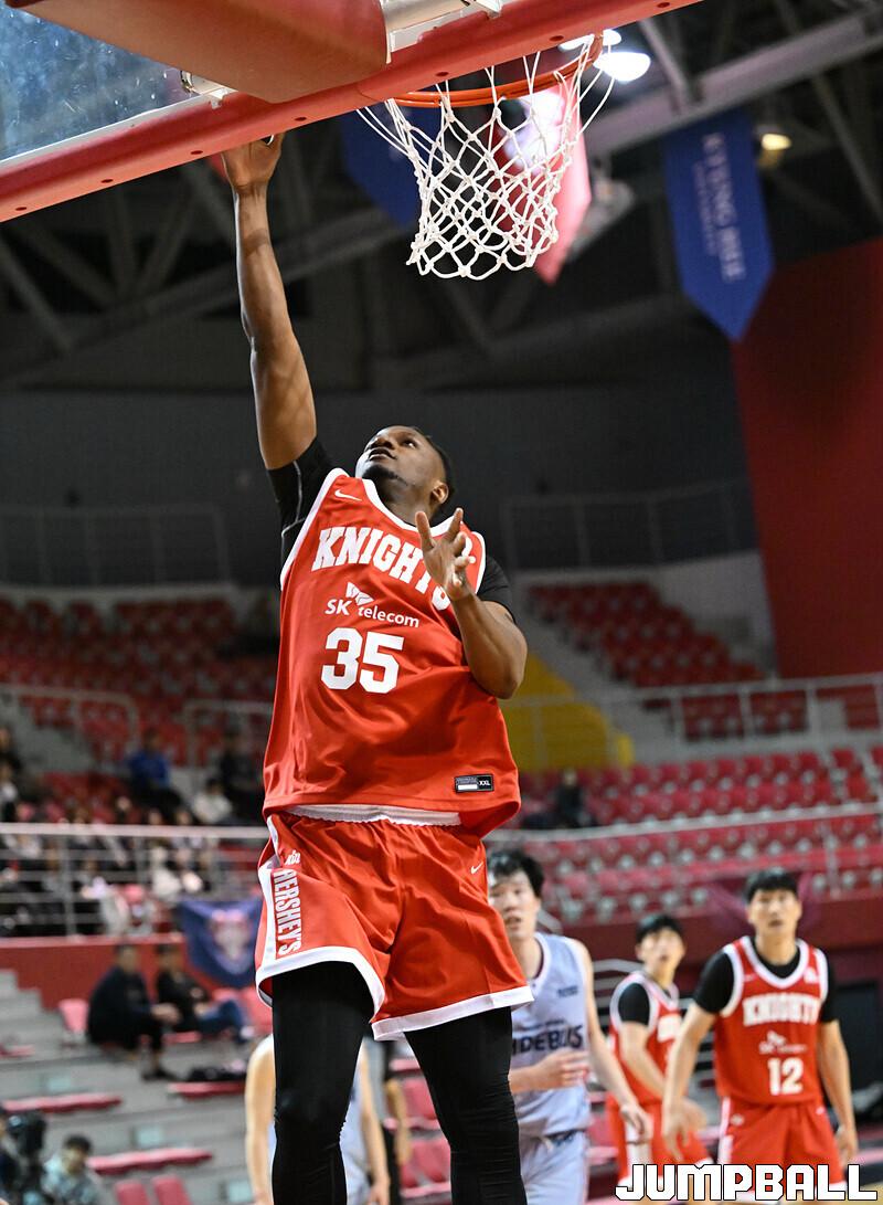 [점프볼=용인/문복주 기자] 21일 경희대 선승관 체육관에서 열린 2025-2026 KBL D리그 서울 SK와 울산 현대모비스의 경기에서 SK 프레디가 속공으로 득점하고 있다.
