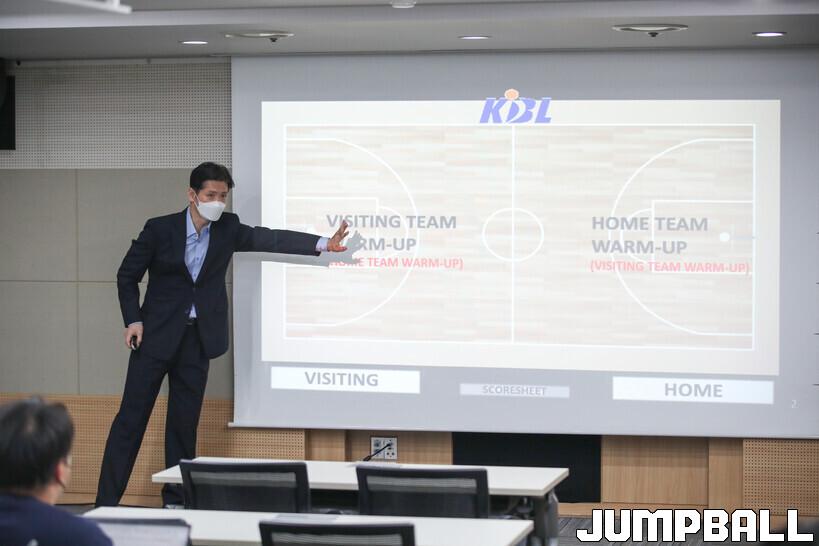 29일 서울 신사동에 위치한 KBL 센터 5층 교육장에서 열린 2022-2023시즌 심판 판정 및 경기 규칙 설명회, KBL 장준혁 심판이 취재기자들 상대로 경기 규칙을 설명 하고 있다.