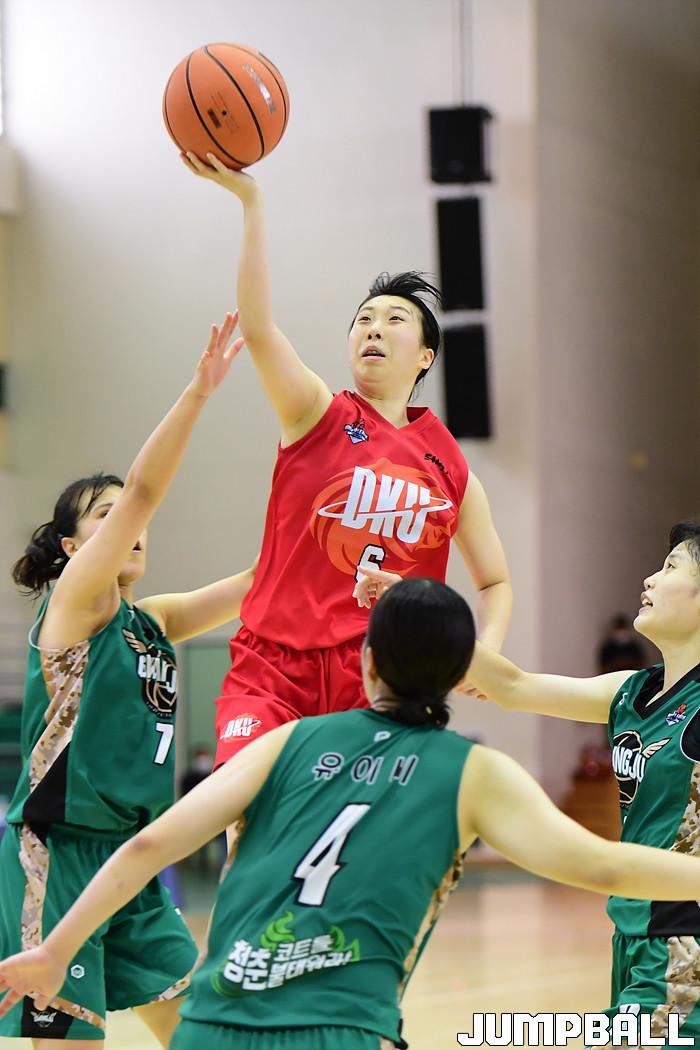 6일 충주 건국대학교 글로컬캠퍼스 건국체육관에서 열린 '2021 KUSF 대학농구 U리그' 단국대와 광주대 여자부 챔피언 결정전 경기, 단국대 조서희가 레이업슛을 시도하고 있다.