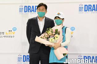 [점프볼=청주/박상혁 기자] 4일 청주실내체육관에서 열린 2020-2021 WKBL 신입선수 선발회, 1라운드 3순위로 신한은행 정상일 감독이 삼천포여고 이다연을 지명했다.