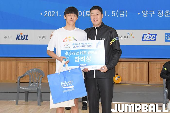 5일 강원도 양구에 위치한 양구 청춘체육관에서 포카리 스웨트 히어로즈 2021 KBL 유스 엘리트 캠프 고등부 퇴소식을 가졌다. 광신방송예고 이해솔이 장려상을 수상했다.