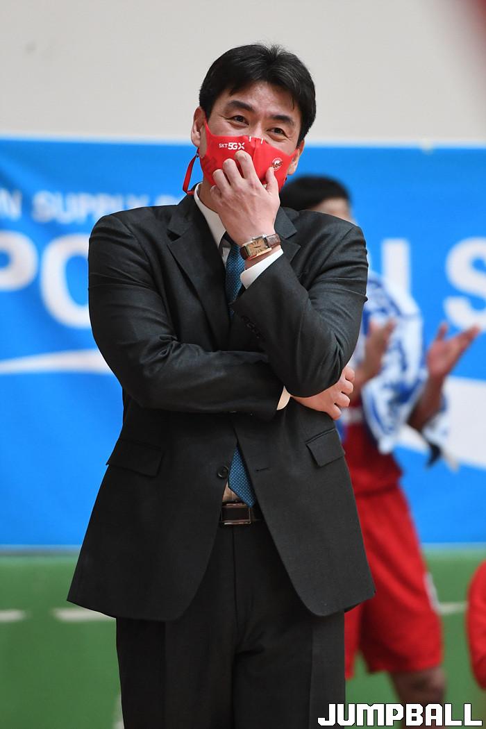 [점프볼=이천/박상혁 기자] 11일 이천 LG챔피언스파크에서 열린 2020-2021 현대모비스 프로농구 KBL 가리그 2차대회 서울 SK와 창원 LG의 준결승 경기, SK 허남영 코치가 경기를 지켜보고 있다.