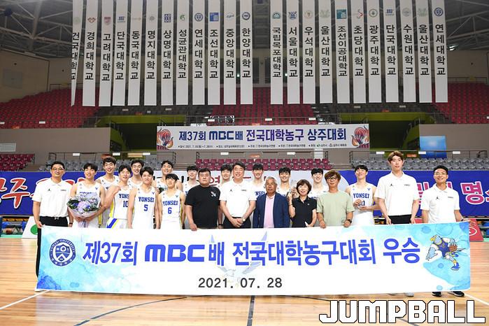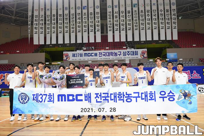 연세대는 28일 상주체육관에서 열린 제37회 MBC배 전국대학농구 상주대회 한양대와의 남대1부 결승전에서 86-71로 승리했다. 이로써 연세대는 지난 2016년 이후 5년 만에 MBC배 정상에 서게 됐다. 한양대는 18년 만에 결승에 오르는 저력을 보였지만, 아쉽게 우승의 문턱을 넘진 못했다.
