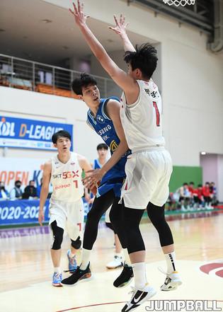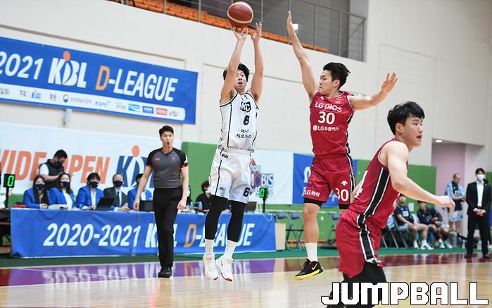 [점프볼=이천/문복주 기자] 26일 이천 LG챔피언스파크에서 열린 2020-2021 KBL D리그 2차대회 창원 LG와 전주 KCC의 경기, KCC  김지후가 3점슛으로 첫득점을 노리고 있다.