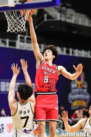 [점프볼=수원/박상혁 기자] 26일 서수원칠보체육관에서 열린 2021 KUSF 대학농구 U리그 고려대와 상명대의 남자부 2일차 경기, 고려대 하윤기가 인사이드에서 공격을 시도하고 있다.