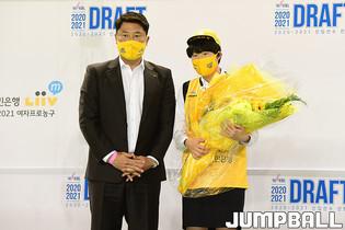 [점프볼=청주/박상혁 기자] 4일 청주실내체육관에서 열린 2020-2021 WKBL 신입선수 선발회, 부산대 이지우가 1라운드 6순위로 하나원큐에 지명되었다.
