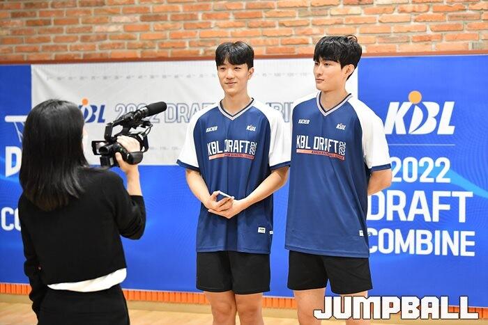 20일 KBL센터 지하 2층에 위치한 트레이닝 센터에서 진행된 2022 KBL 신인선수 드래프트 컴바인, 참가 선수들이 인터뷰를 진행하고 있다. [점프볼=신사/유용우 기자]