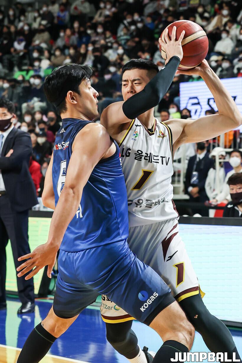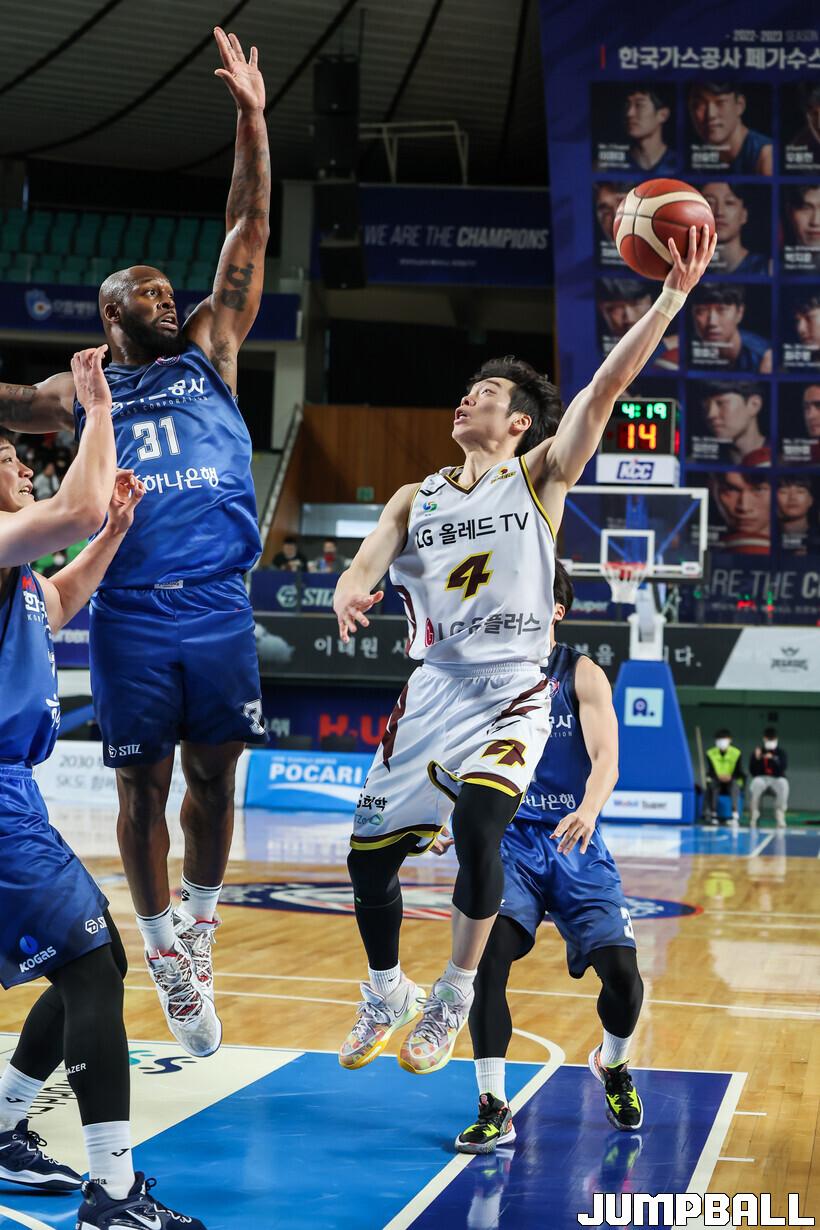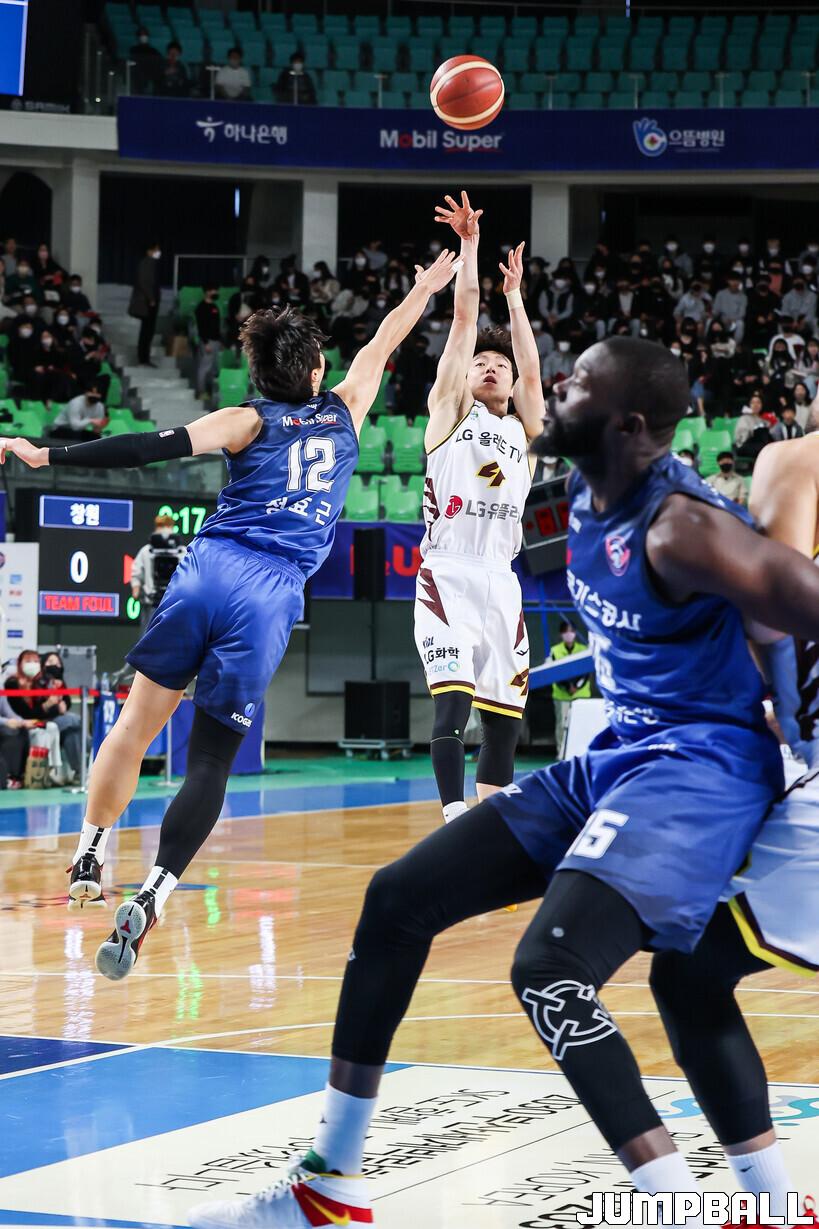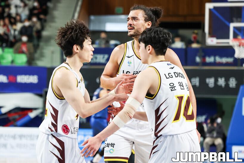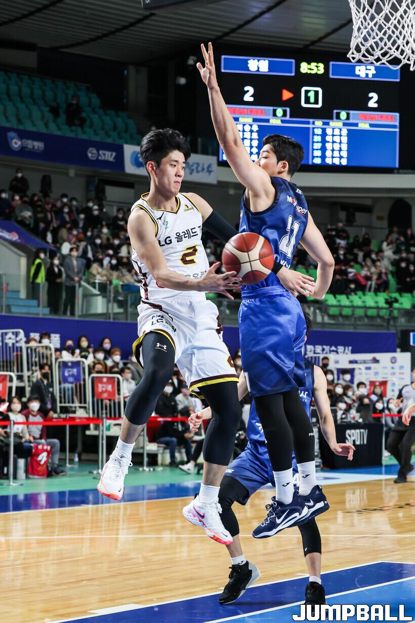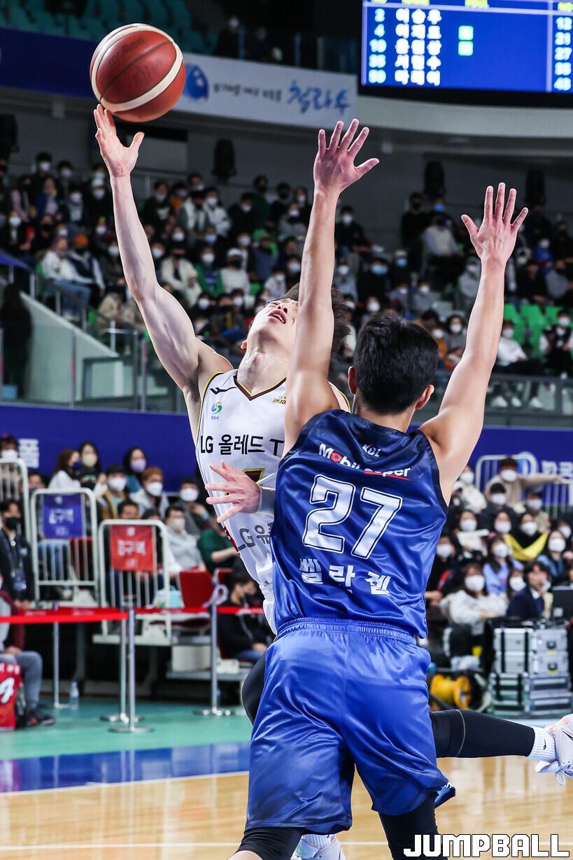[점프볼=윤민호 기자] 창원 LG는 6일 대구체육관에서 열린 2022~2023 SKT 에이닷 프로농구 대구 한국가스공사와 원정 경기에서 76-62로 이겼다.