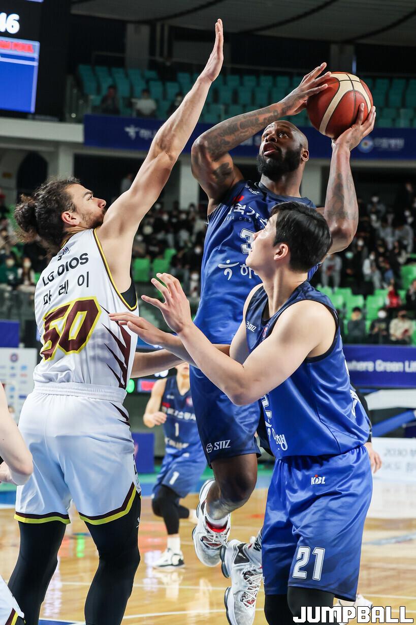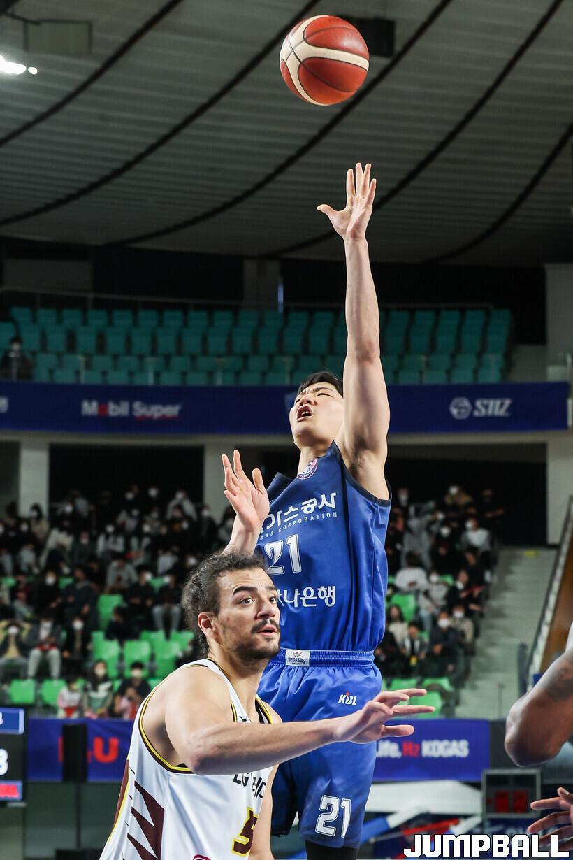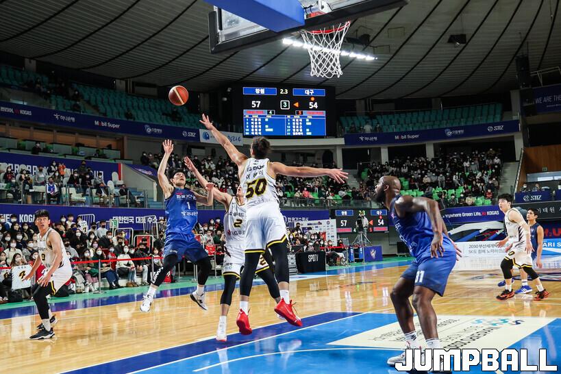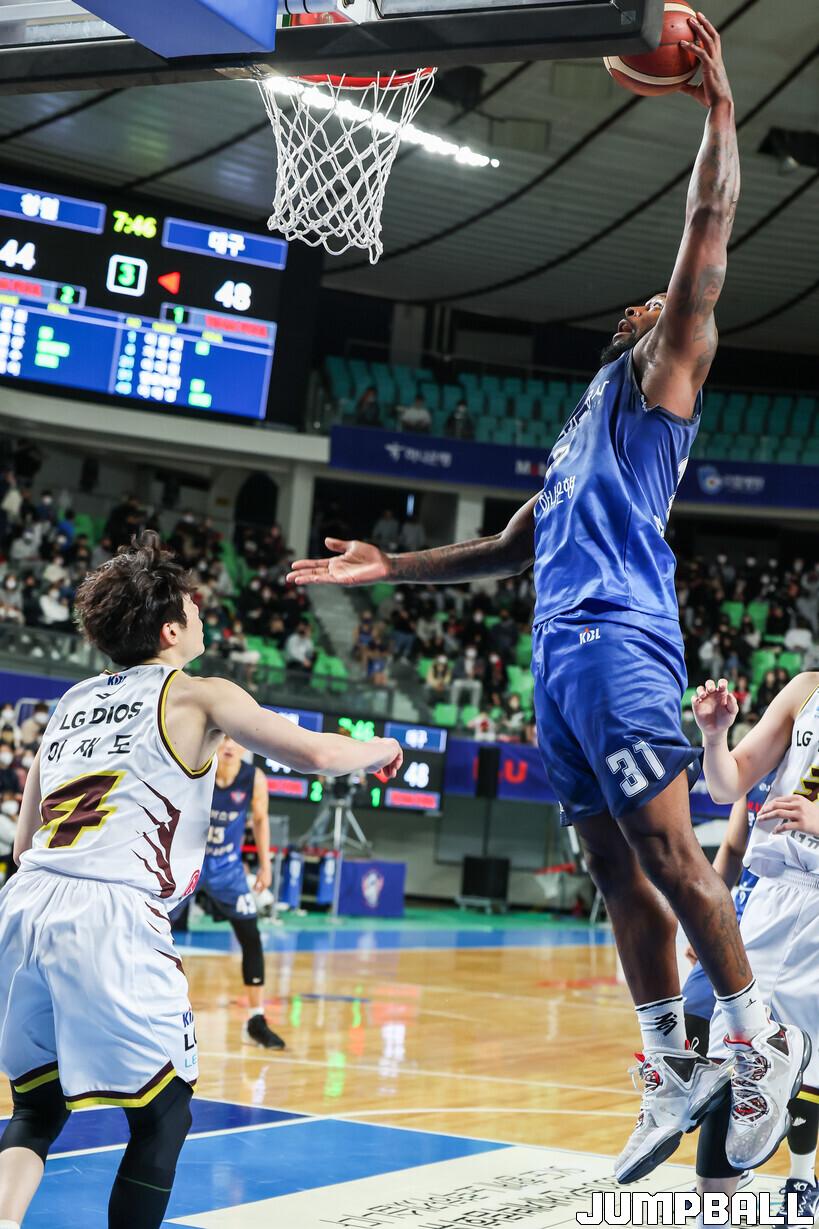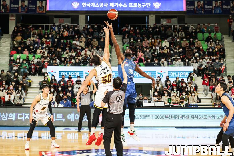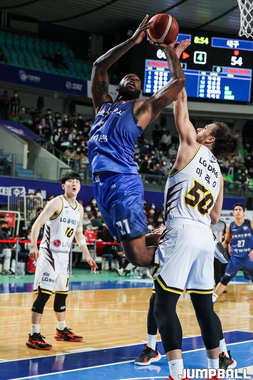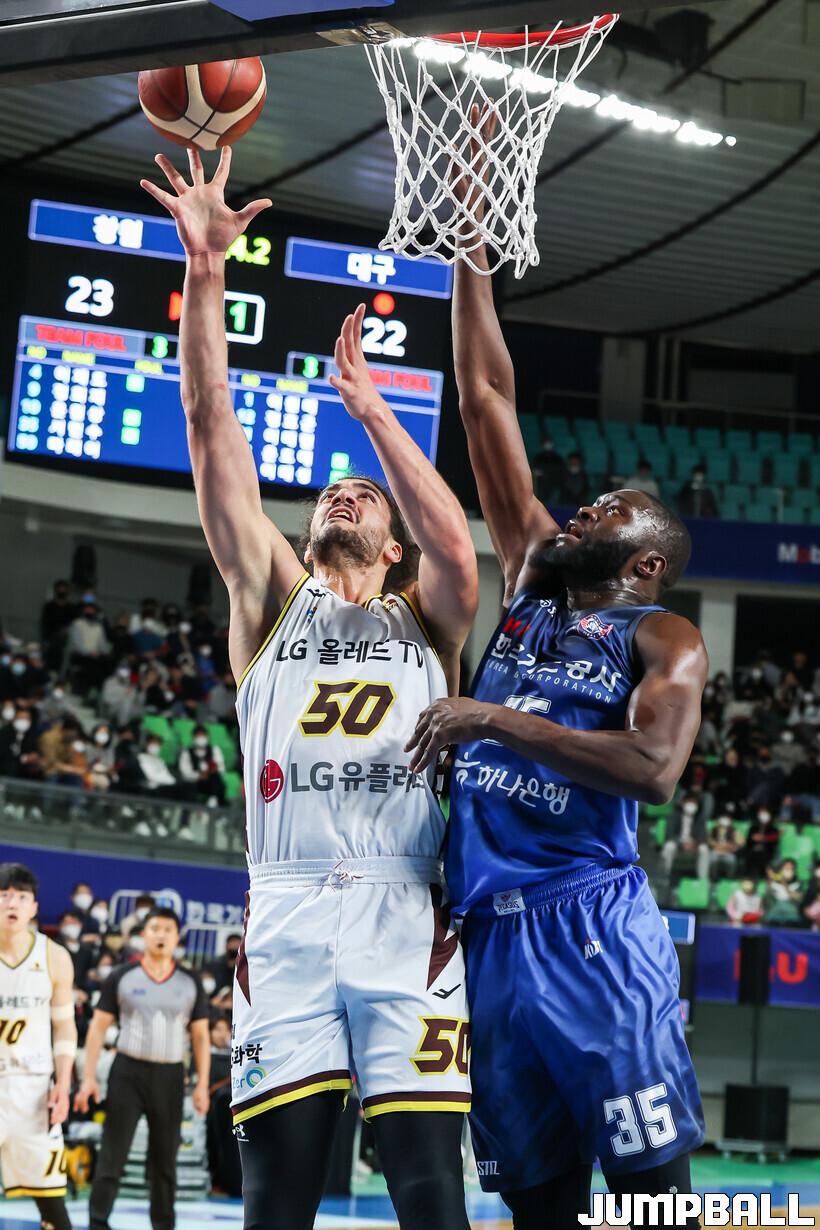 [점프볼=윤민호 기자] 창원 LG는 6일 대구체육관에서 열린 2022~2023 SKT 에이닷 프로농구 대구 한국가스공사와 원정 경기에서 76-62로 이겼다.