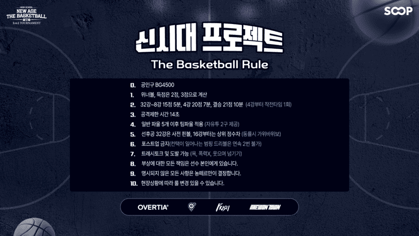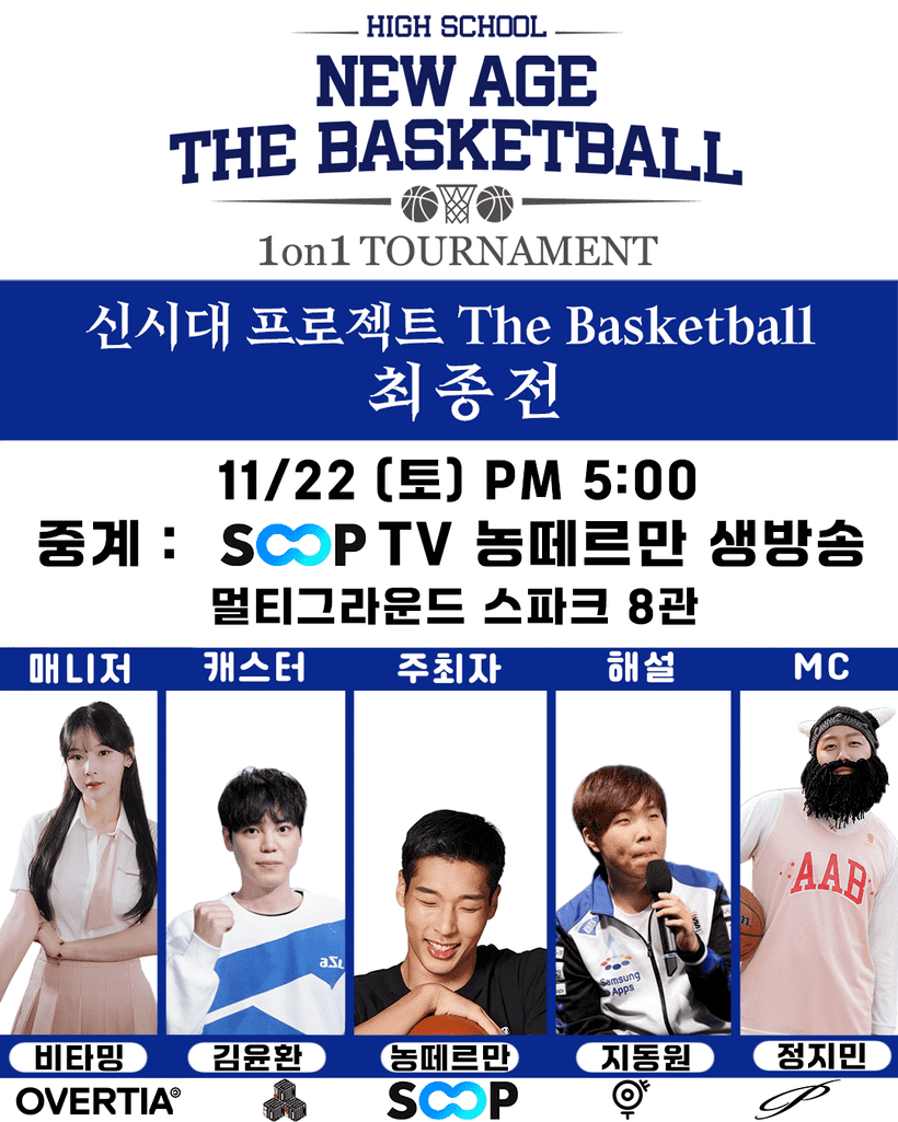 ‘신시대 프로젝트 THE BASKETBALL’을 표방하는 하이스쿨 뉴에이지 더 바스켓볼은 이미 지난 14일 지원자 모집을 마감했으며, 22일 오후 5시 멀티그라운드스파크 8관에서 열리는 최종전 만을 남겨두고 있다. 총 216명이 지원한 가운데 1차 온라인 예선에는 160명이 통과했고, 그리고 마지막 최종전에서 32명의 참가자가 추려졌다.