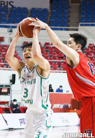 [점프볼=윤민호 기자] 26일 울산 동천체육관에서 열린 2020-2021 현대모비스 프로농구 울산 현대모비스와 원주 DB의 경기에서 DB 녹스가 현대모비스 숀롱의 수비를 피해 슛을 하고 있다.