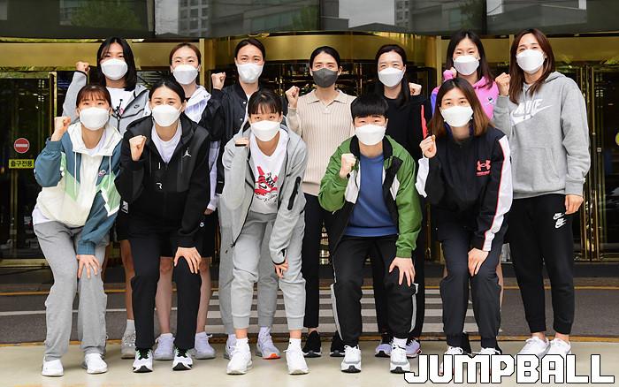[점프볼=서울/박상혁 기자] 10일 청담동 호텔리베라에서 올림픽 여자 농구 대표팀이 소집을 가졌다. 선수단이 승리를 향한 화이팅 포즈를 취하고 있다.